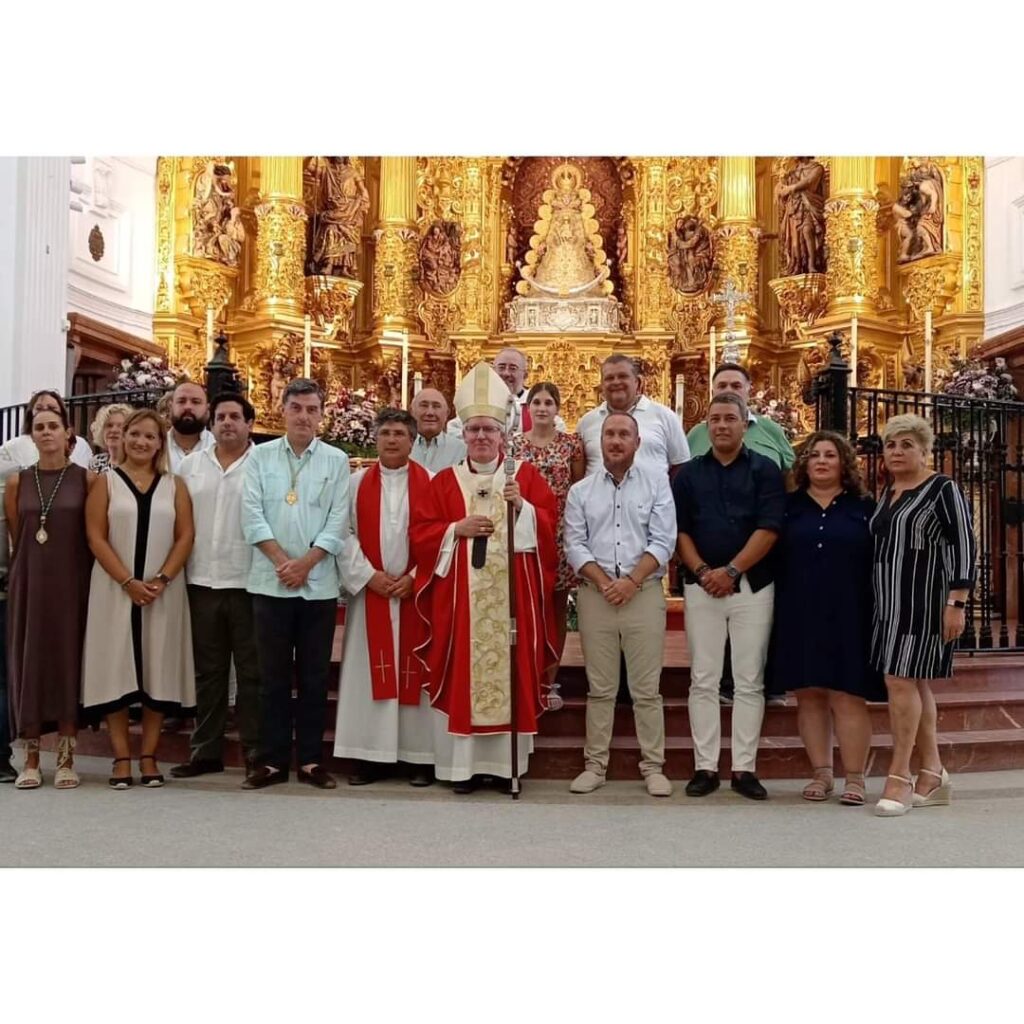 En la mañana del pasado 11 de agosto, hemos celebrado una reunión de trabajo con el Presidente de la Federación de Entidades Culturales de Andalucía en Cataluña, Daniel Salinero, y miembros de su Junta Directiva, previa a la celebración de su Eucaristía anual en el Santuario del Rocío. La que ha sido oficiada por el Excmo. y Rvdmo. Sr. D. José Ángel Sáez Meneses, arzobispo de Sevilla, que ha concelebrado nuestro Director Espiritual y Rector del Santuario, Francisco Miguel Valencia, y el Rvdo. Manuel Coronado, su secretario . A ella ha asistido Jorge Vázquez Calderón, Director General de Andalucía Global y representantes de sus distintas hermandades rocieras.