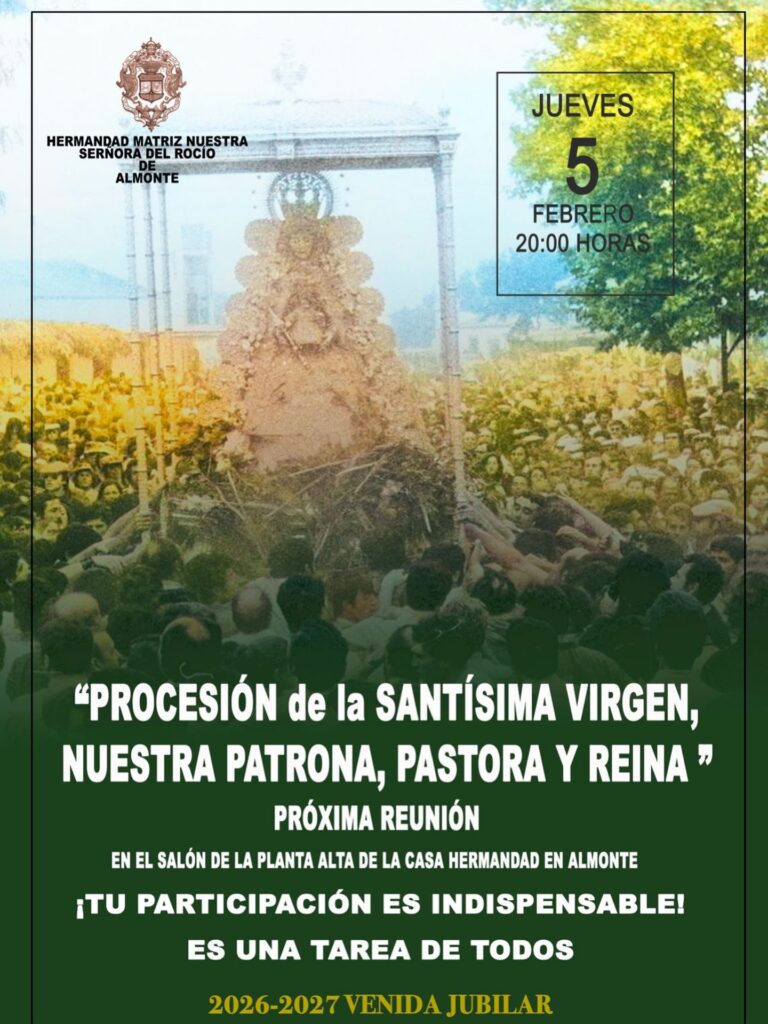 Este jueves, a las 20,00 horas, en nuestra Casa Hermandad organizamos una reunión para tratar la Procesión de la Virgen de la Romería de 2026. Participa !!!!!