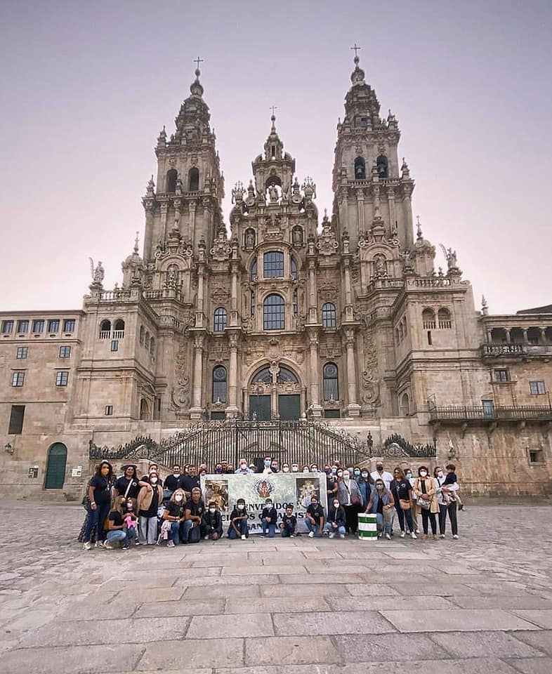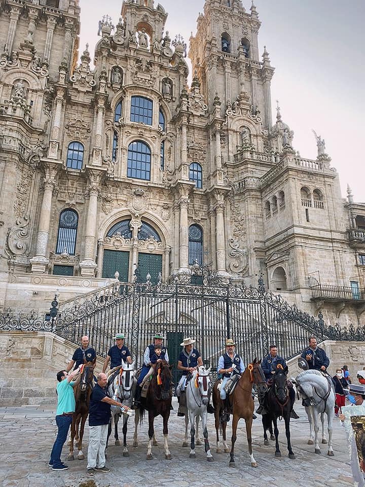 Una representación de la Hermandad Matriz se ha hecho presente esta mañana en la Plaza del Obradoiro, para celebrar juntos la llegada de los caballistas onubenses que han hecho el camino de Santiago desde El Rocío.