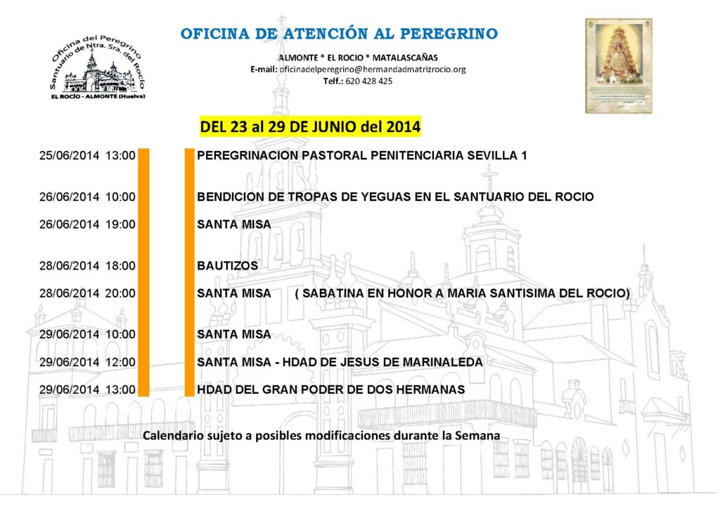 Rocío – Calendario celebraciones 23 al 29 de junio de 2022