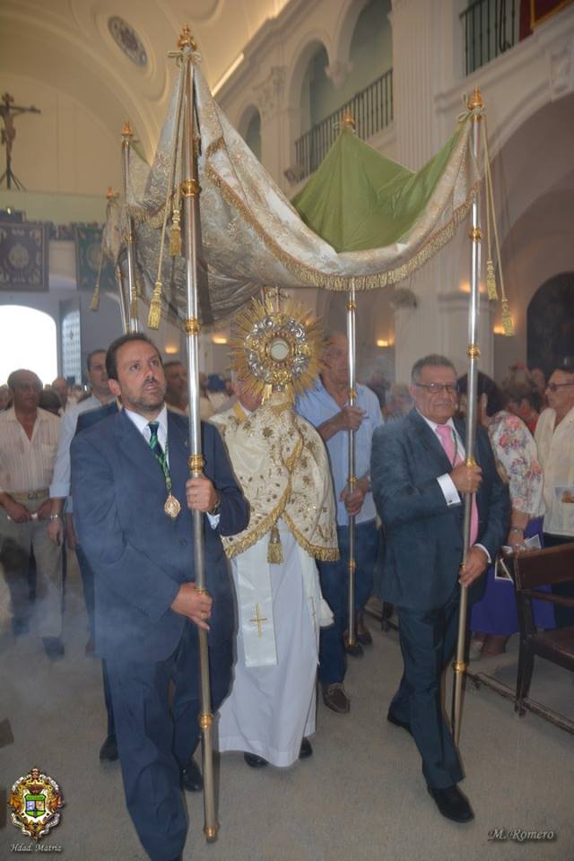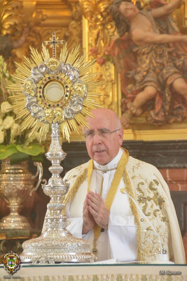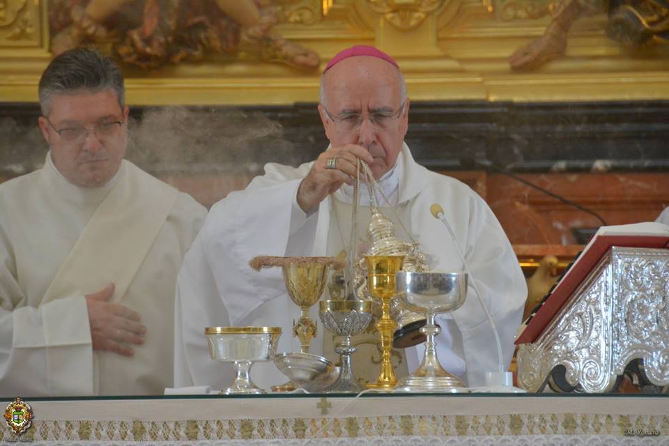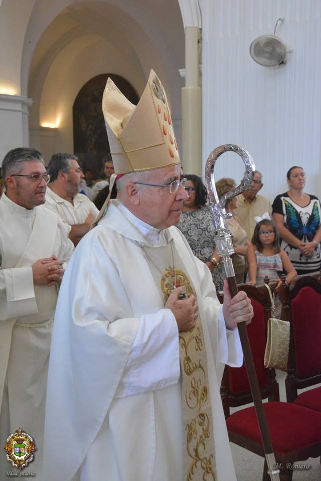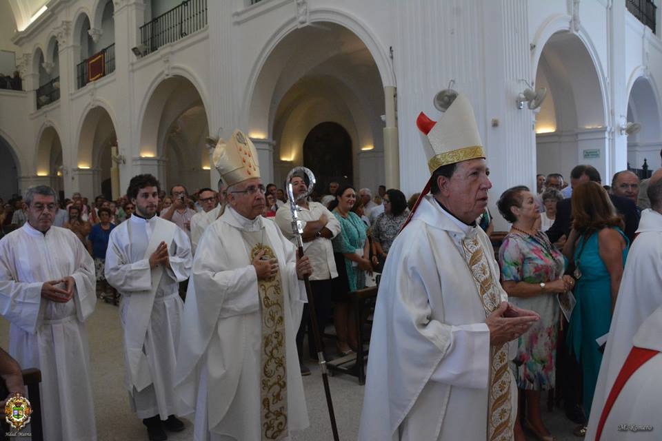 Como colofón de los Cultos en honor del Voto del Rocio Chico, se ha celebrado a las 10 h de la mañana del 19 de Agosto, la Función Principal, presidida por el Excmo y Rvdo. Sr. D,. José VIllaplana Blasco, Obispo de Huelva, estando acompañado por el Arzobispo Castrense y demás sacerdotes.