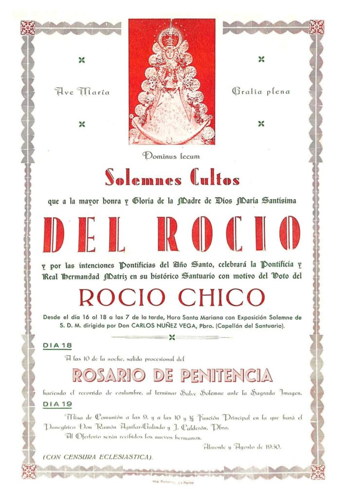 Hoy el pueblo de Almonte, sigue celebrando esta efemérides los días 18 y 19 de agosto de cada año, conociéndose como el Rocío Chico.
