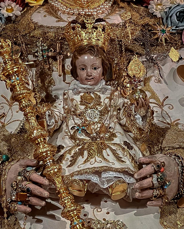 A las puertas de la Navidad, esta pasada noche las hermanas camaristas han vestido al Pastorcito con el traje a juego con el de la Santísima Virgen.