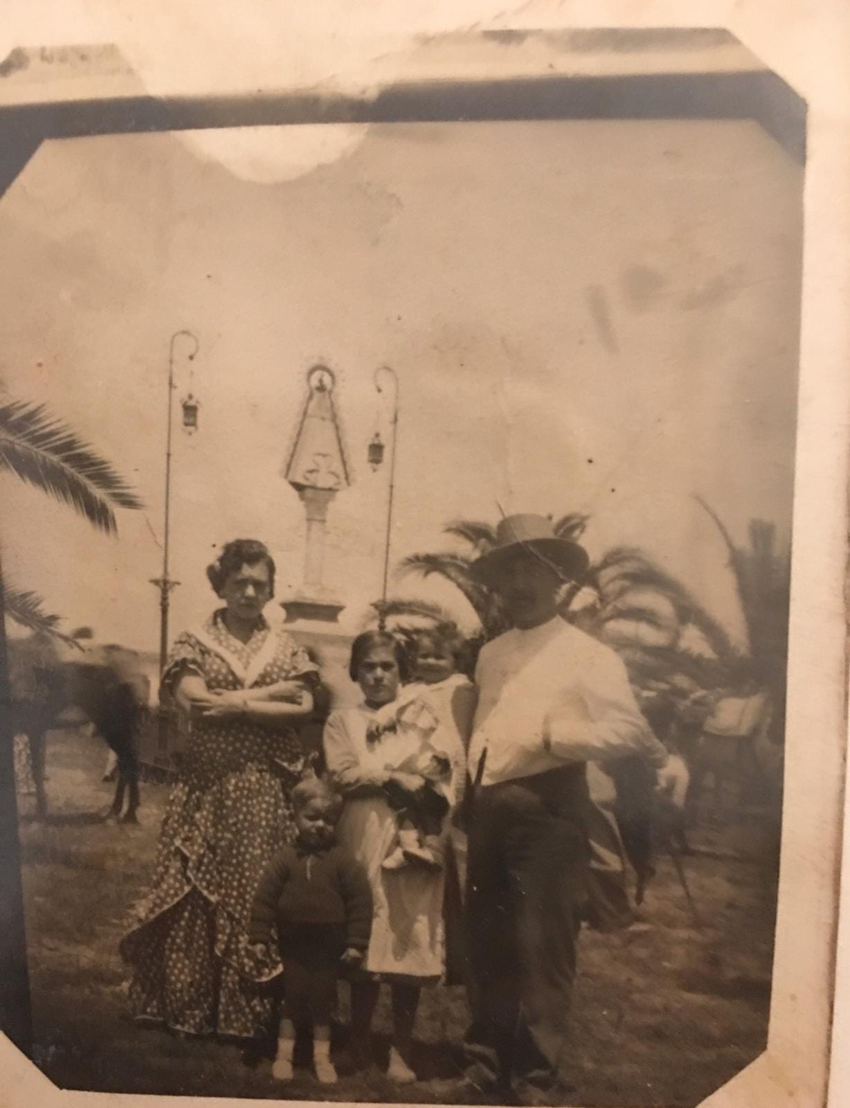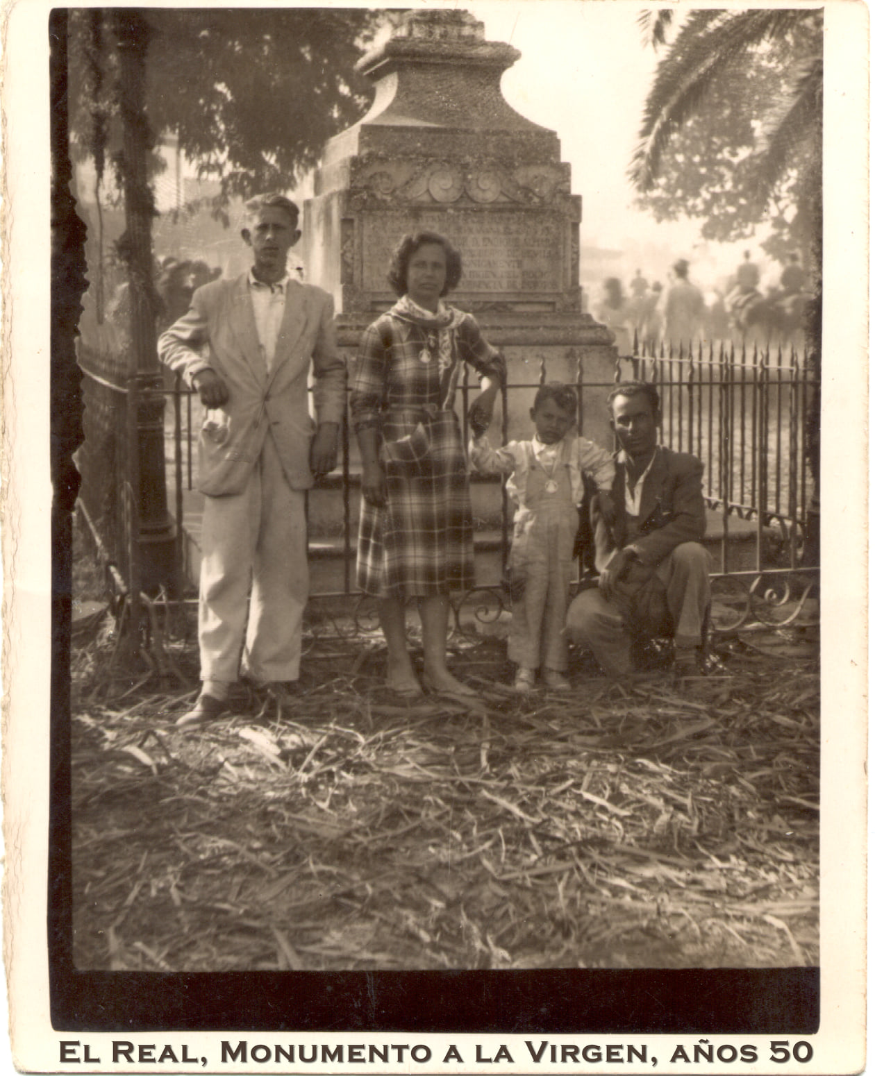 Iremos compartiendo en nuestras redes fotografías entorno al monumento de la Coronación de la Virgen, en una exposición virtual que hemos titulado «Testigo de cien años de devoción».El pasado jueves, 13 de agosto,tuvo lugar el acto en el cual se alumbró el Real del Rocío con motivo de los cien años del Monumento de la Coronación. Nuestro Hermano Mayor junto con los representantes de las Hermandades del Rocío que tienen Casa de Hermandad en el Real y las autoridades del Ayuntamiento de Almonte acompañaron a la Hdad Matriz de Ntra Sra del Rocío de Almonte en este bonito acto.La fotografía que extraigo del álbum familiar data de la década de 1940. Al pie del enrejado del monumento, aparecen mi bisabuelo Rafael Medina y su hija Rafaela. Mi bisabuelo por entonces vivían en el Rocío en la calle Sanlúcar. Era encargado por aquellos años de blanquear el antiguo Santuario de la Virgen. Mi tía-abuela Rafaela se casó con José Pino, sobrino de los Santeros Antonio Martínez y Micaela Pino. Javier CoronelFotografía en la cual se puede ver a mi madre Pilar , mi tío Rufino y mis abuelos Felix y Mercedes justo delante del monumento en los días de la Romería de pentecostés, por desgracia no tengo datos del año de la misma pero muy posiblemente se trate de principios de los años 50 . Ángel Carrascosa García