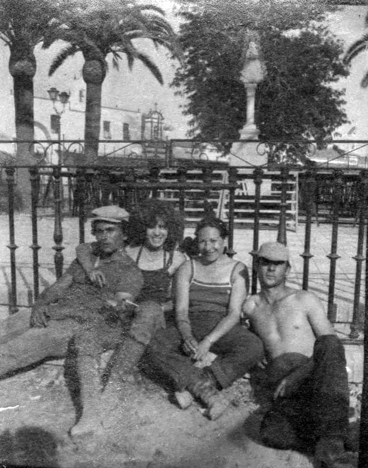 Matrimonio Martín Triana, con Antonia «la de los cántaros» que lleva en brazos a mii tía Pepa Martín Triana y, de pie, mi padre Rafael Martín Triana. Año 1936 aproximadamente. Juan Jesus Martin Guitart