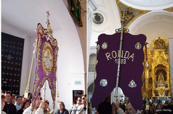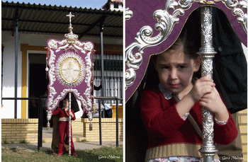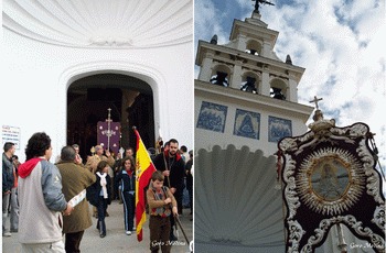 El Simpecado en el rezo de la Salve; al lado, el futuro del Rocio.