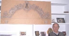 El otro es un espléndido dibujo realizado por Dominguez con la colaboración de Juan Luis González que es el boceto de lo que va a ser una talla en madera para el frontal de la Carreta del Simpecado que realizará el propio Juan Luis Gonzalez y que seguramente estará terminado para la romeria del añoque viene.
