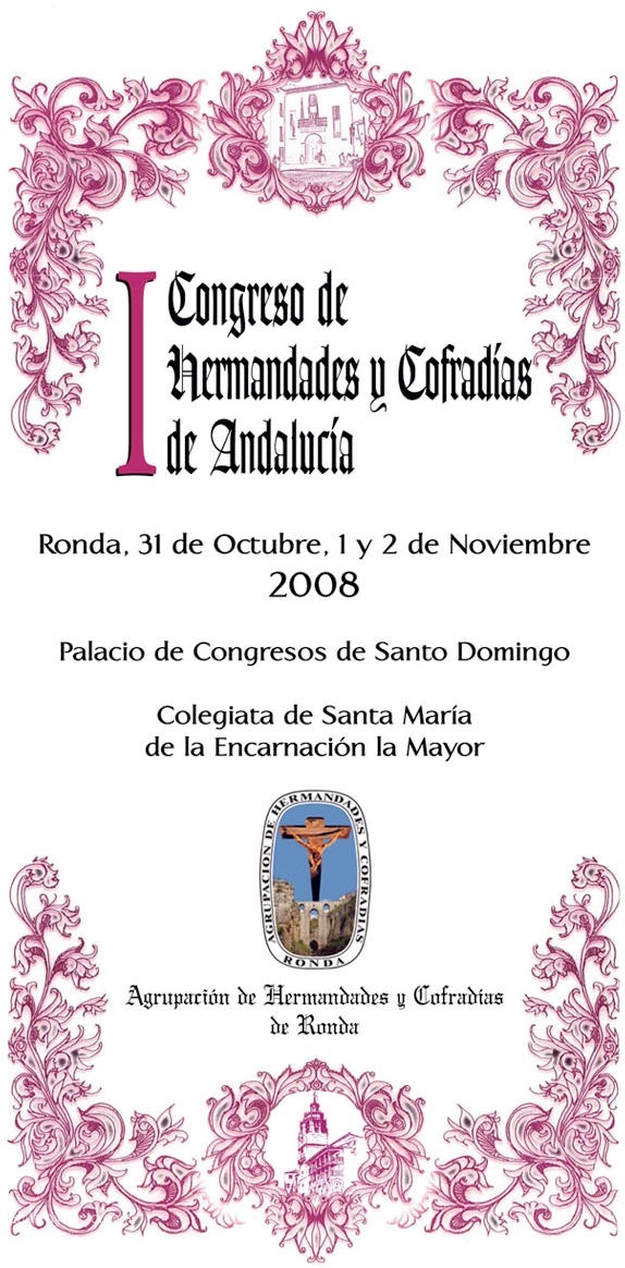 La agrupación de hermandades y cofradías organiza el Primer congreso de Hermandades y Cofradías de Andalucía. Durante los días 31 de Octubre, 1 y 2 de Noviembre. En el Palacio de Santo Domingo y la Parroquia de Santa María la Mayor. en la Web www.semanasantaderonda.com/congreso tenéis toda la información y el boletín de inscripción.