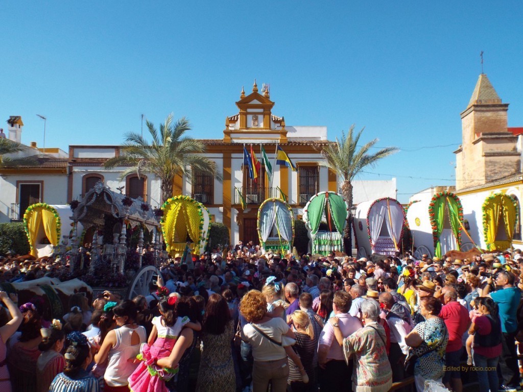 Con la Hermandad, acuden a la romería en torno a 1.500 peregrinos, unos 50 remolques, y alrededor de 60 vehículos todoterreno, además de 30 charrés y 60 animales entre caballos y mulos, aunque sin duda la imagen más característica de Gines por los caminos volverán a ponerla las carretas tiradas por bueyes, sello inconfundible de los rocieros de la localidad.