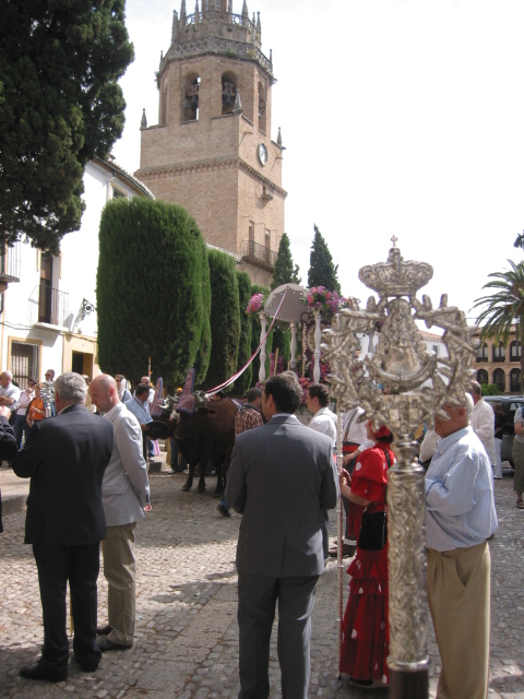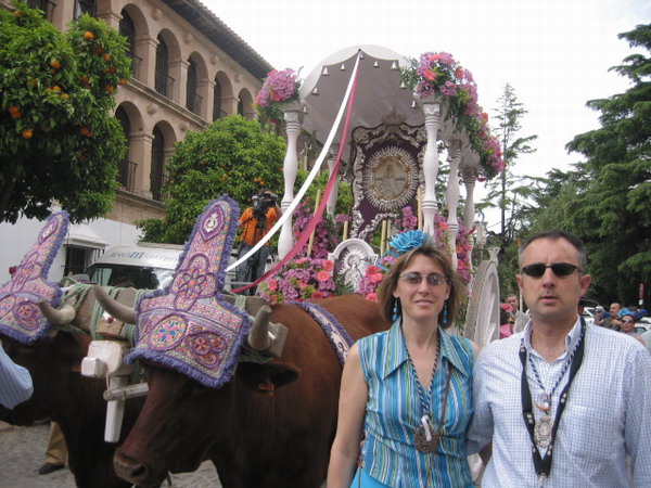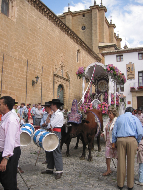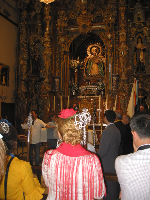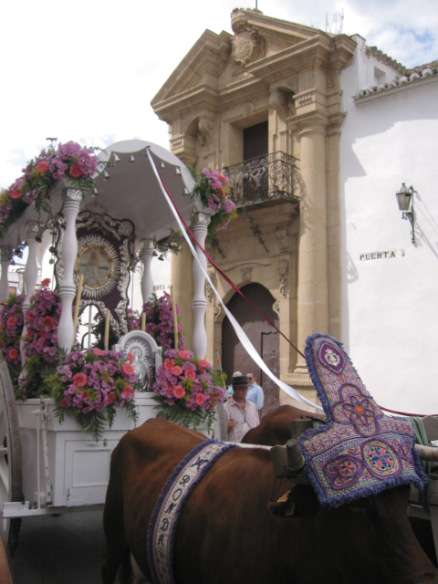 10,30 Hora .- Misa de Romeros en la Iglesia de Santa María de la Encarnación La Mayor para comenzar la Romería. Una vez terminada la Santa Misa continuaremos tras nuestro Simpecado por las calles de Ronda despidiéndonos de Nuestra Patrona La Virgen de la Paz en su Santuario, siguiendo el recorrido por la calle Armiñan, Virgen de la Paz y calle Jerez para rezar el Ángelus en el Monumento a la Virgen del Rocío iniciando así el CAMINO HACIA LA ALDEA DE LA BLANCA PALOMA.