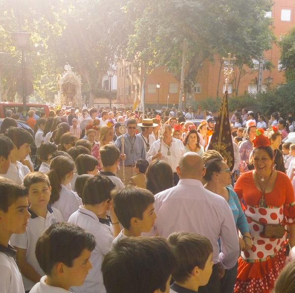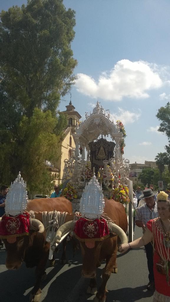 La Hdad. de Sevilla Sur celebrada su Misa de Romero en la Parroquia de San Juan de Ávila inicia su camino a la Aldea del Rocío.