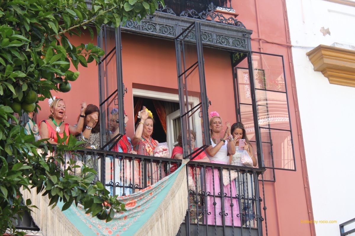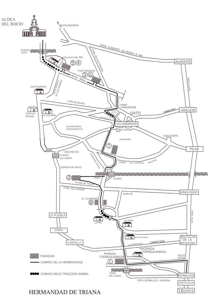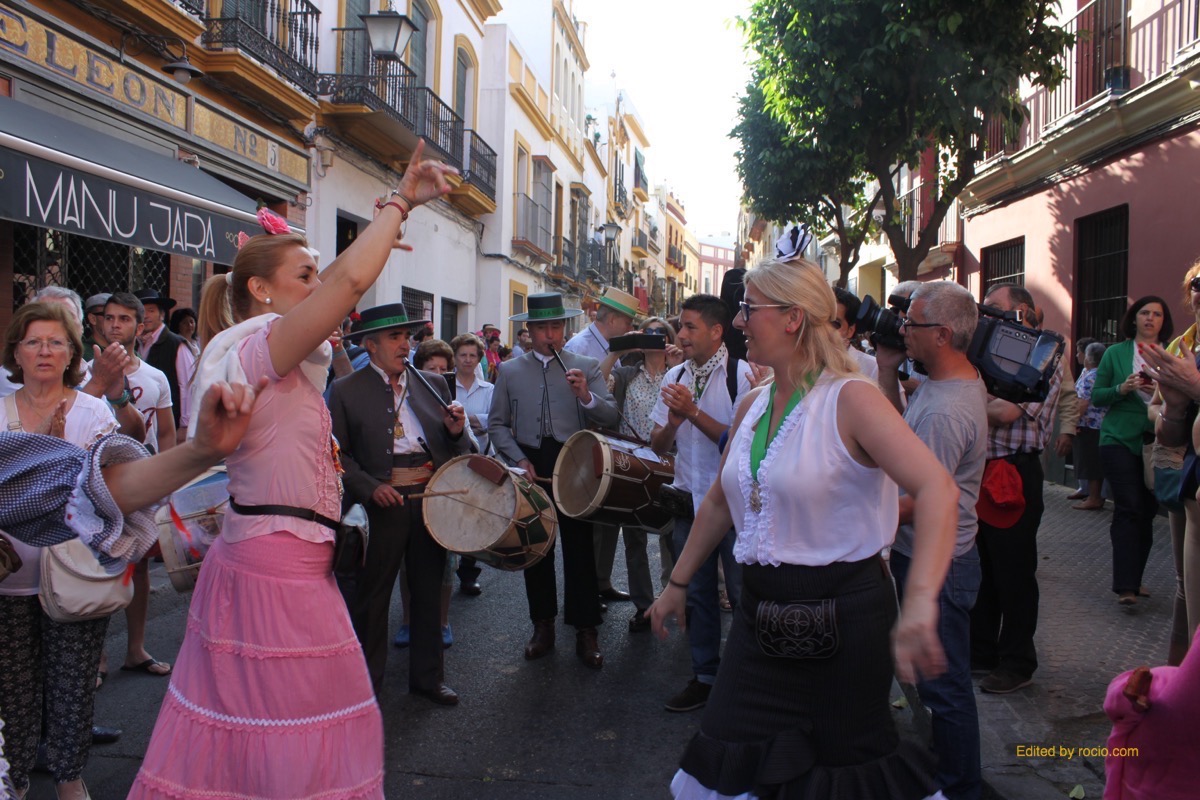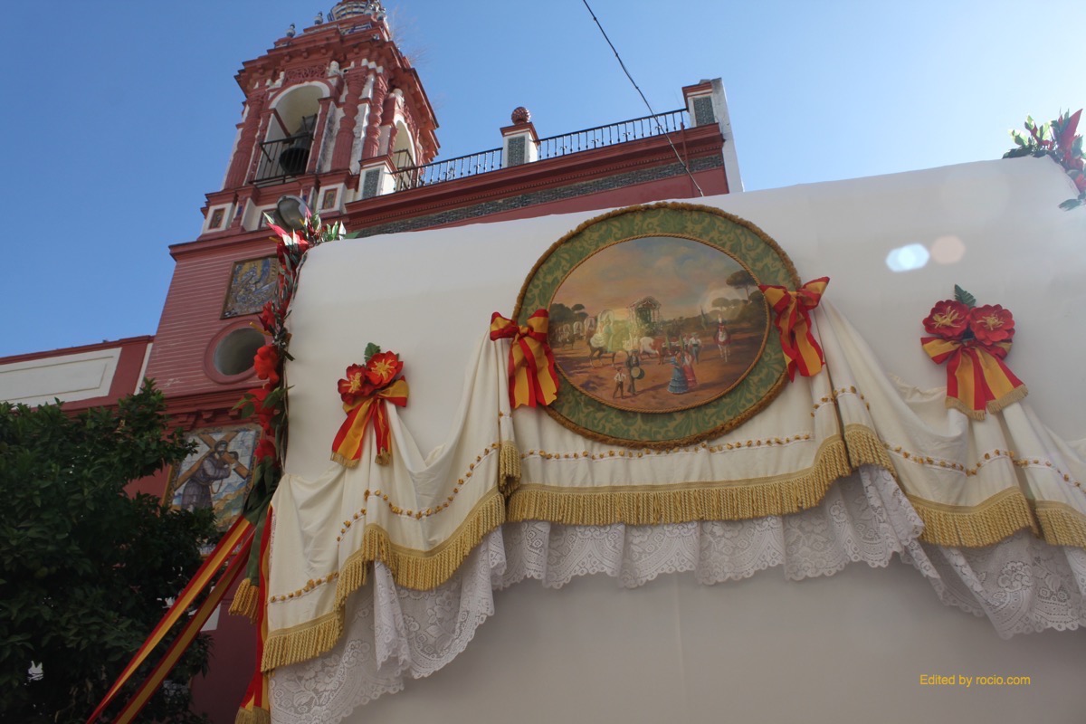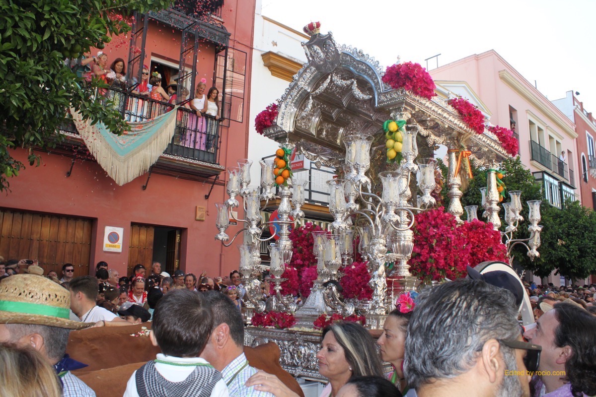 Salida de la Hermandad de Triana 2015. La Hermandad de Triana después de celebrar su Misa de Romeros en su Capilla de la calle Evangelista a las 7,30 de la mañana ha iniciado su camino hacia la aldea almonteña.