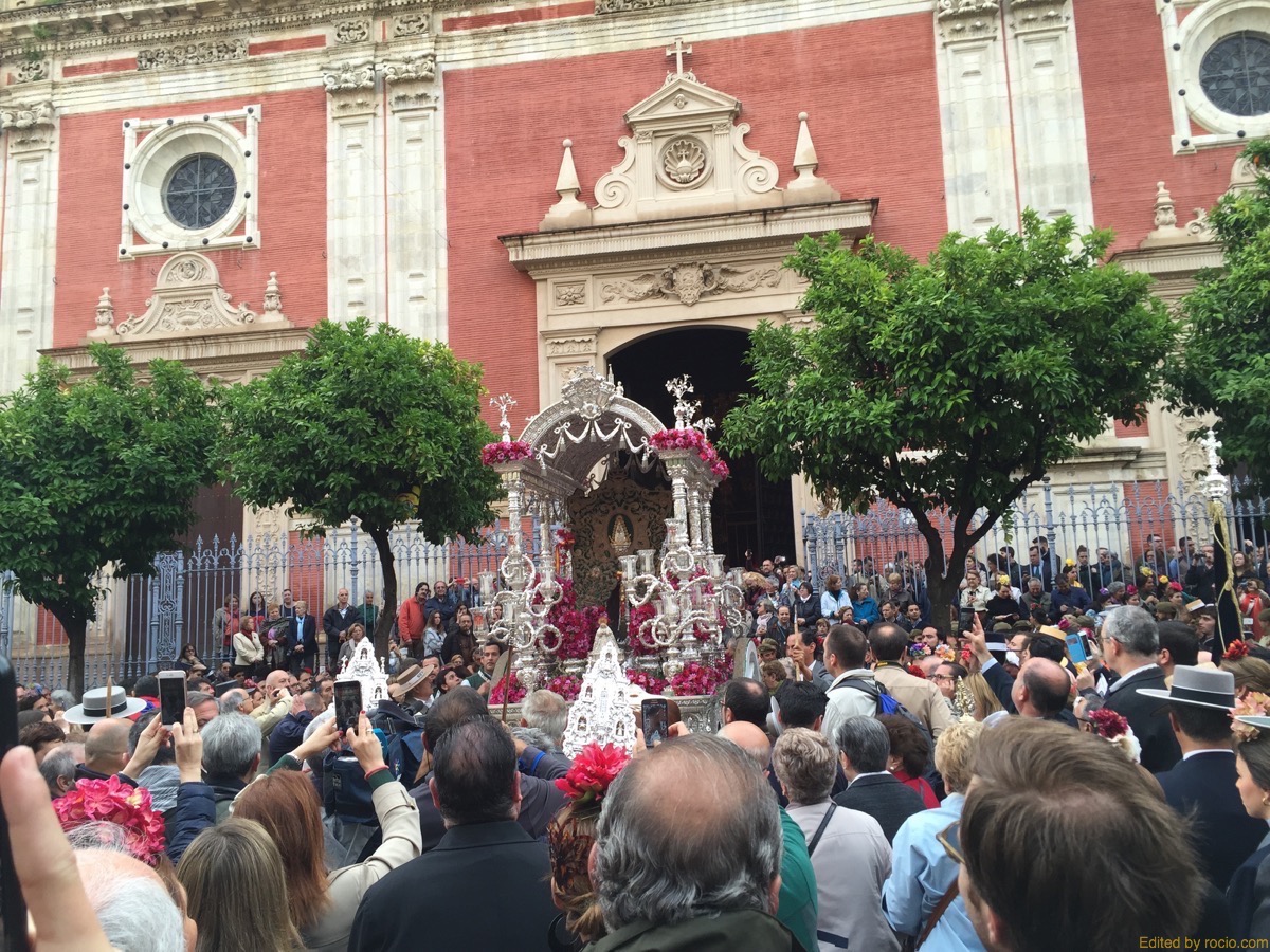 También a las 9:00 del miércoles saldrá la Hermandad de Sevilla desde el Salvador. Este año la misa de romeros se retrasa media hora y se celebrará a las 8:00. Discurrirá por el centro de la ciudad, con parada y ofrenda floral en el Ayuntamiento (9:30). Una de las estampas más bellas es el discurrir de carretas por la Plaza de la Virgen de los Reyes y del Triunfo (10:30). Abandonará la ciudad en la comisaría de Blas Infante a las 11:15 para dirigirse a San Juan de Aznalfarache.