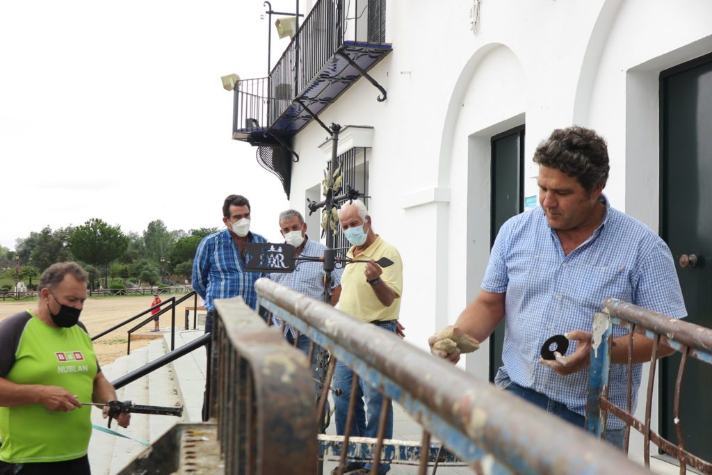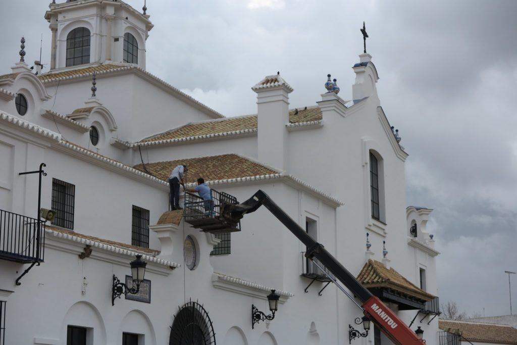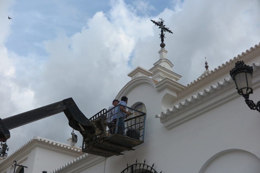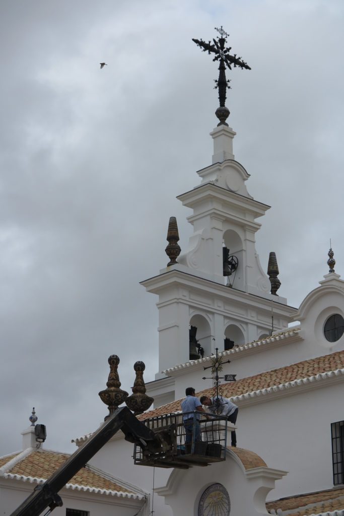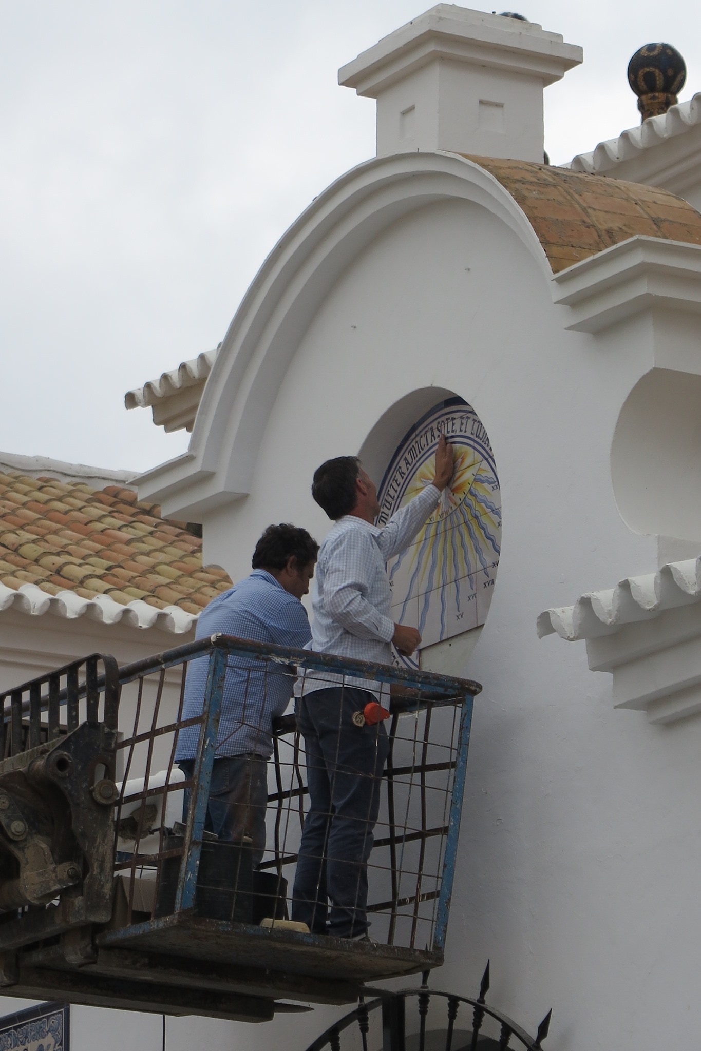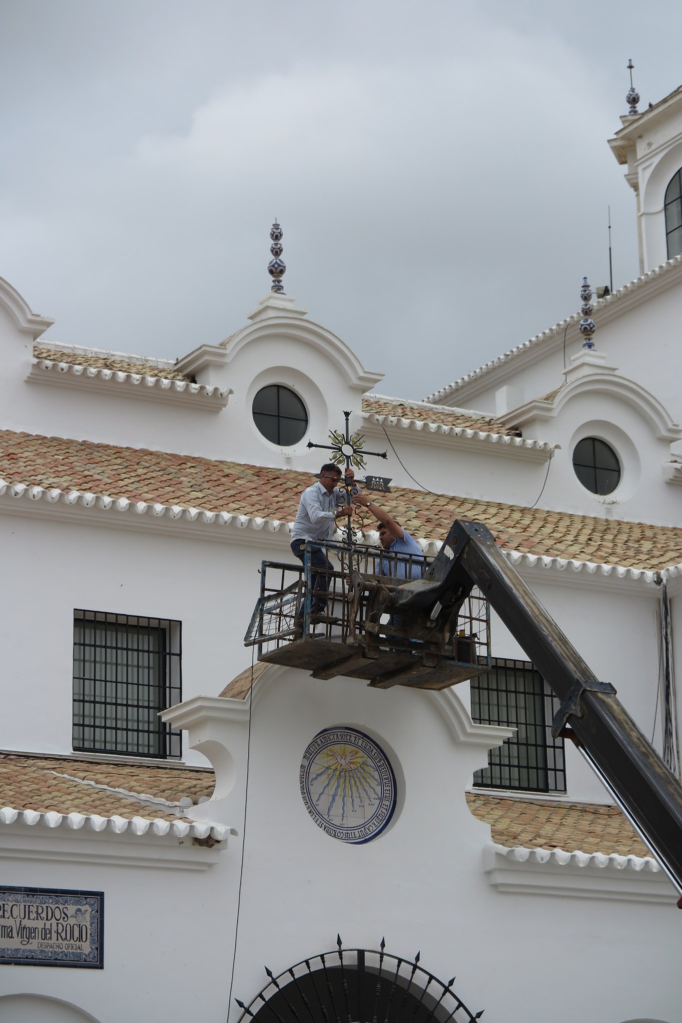 Esta mañana se ha dado comienzo a los trabajos de colocación del reloj de sol y de la veleta que presidirán una de las puertas laterales de la marisma del Santuario del Rocío, obsequio de la familia Rojas-Acosta y José M Díaz Regino , con la ayuda de Felix Espinosa Acosta que ha puesto la máquina, coordinados estos trabajo por nuestro compañero, Miguel Angel Romero Enrique .