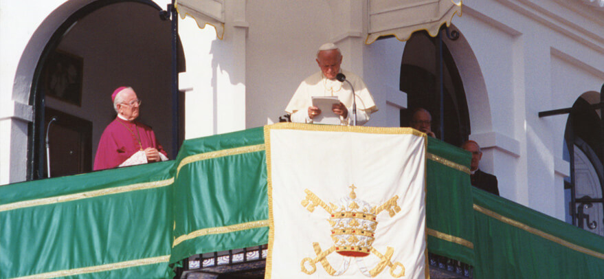Por otra parte, es consolador comprobar que vuestros pastores muestran gran solicitud y preocupación por fomentar en las hermandades una mayor formación cristiana, una más activa participación litúrgica y caritativa en la vida de la Iglesia, que se traduzca en verdadero dinamismo apostólico. Por mi parte y apelando al sentimiento más profundo que como cristianos y rocieros, llevais en el fondo de vuestras almas, y por Ella a Cristo, dando así también testimonio de una fe que se hace cultura. Sería una pena que esa cultura cristiana vuestra, profundamente enraizada en la fe, se debilitara por inhibición o por cobardía al ceder a la tentación y al señuelo – que hoy se os tiende – de rechazar o despreciar los valores cristianos que cimentan la obra de la devoción a María y dan savia a las raíces del Rocío. Por esos os vuelvo a insistir hoy ante la Virgen: dad testimonio de los valores cristianos en la sociedad andaluza y española.