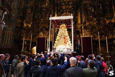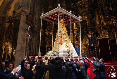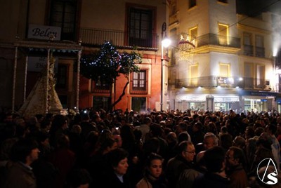 En la pasada noche del martes 22 de diciembre, la imagen de Mª. Stma. del Rocío de la Hermandad Filial del Rocío de Sevilla procesionó por las calles de la feligresía del Salvador. Cientos de fieles se encontraban tanto dentro de la Iglesia como en la Plaza del Salvador a la espera de la salida de la talla conocida en la ciudad cariñosamente como "La Lotera".