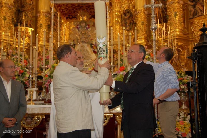 El cirio fue encendido por Alonso Saavedra, almonteño trasplantado de hígado, el Dr. Ángel Bernardos y el Dr. José Pérez Bernal, Coordinador de Trasplantes, quien junto a la Hermandad Matriz y el Obispo de Huelva ha impulsado esta emotiva iniciativa.