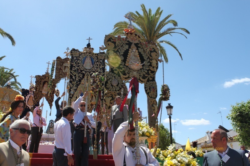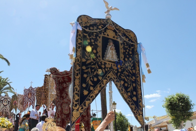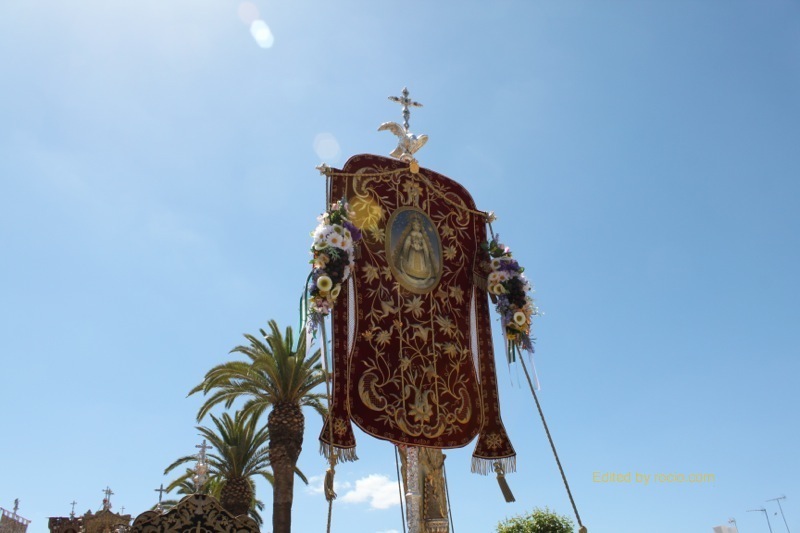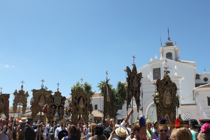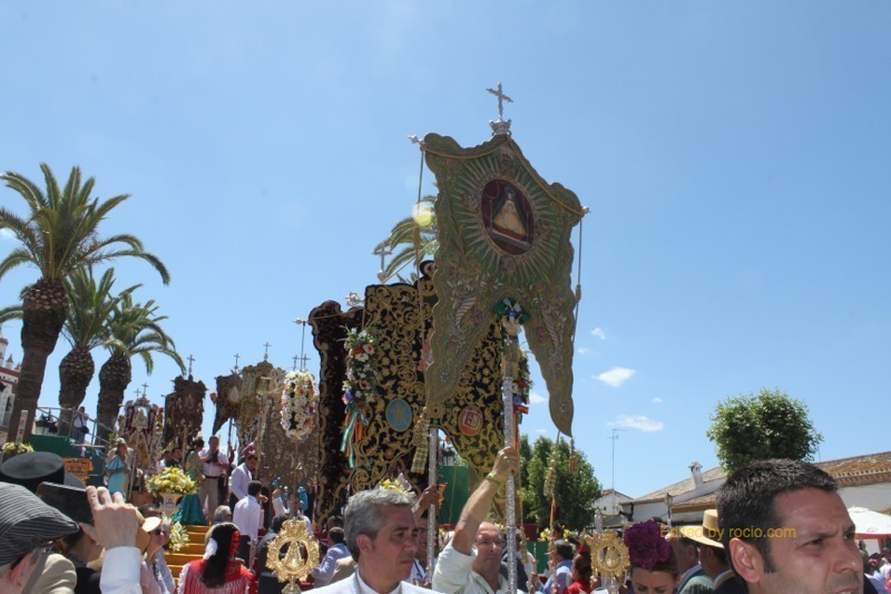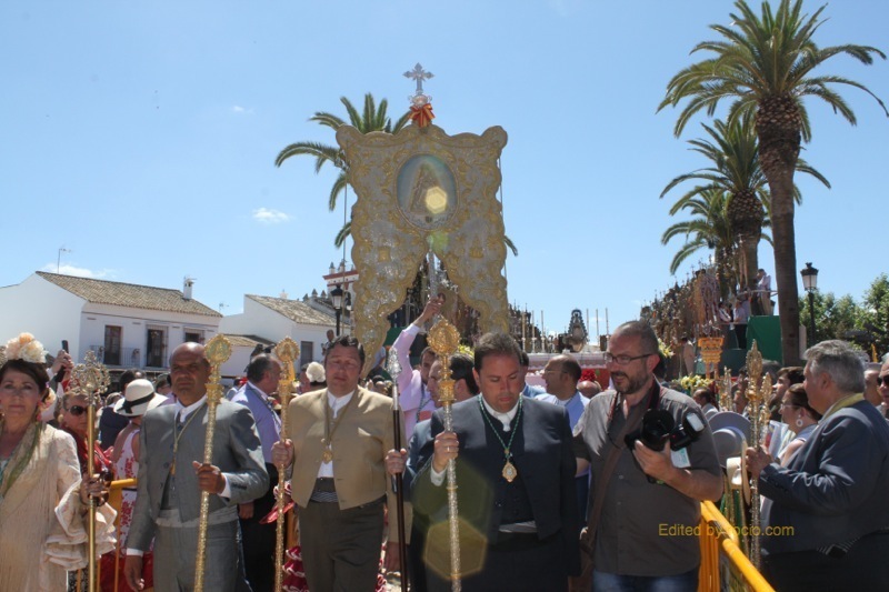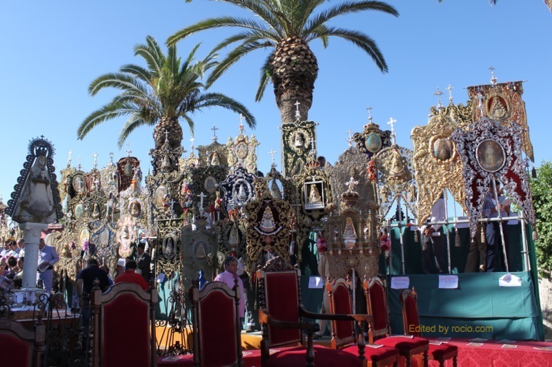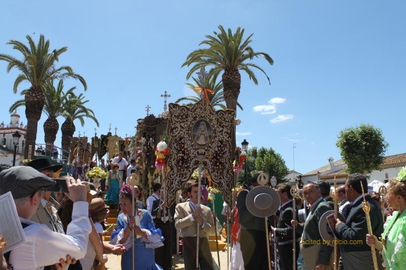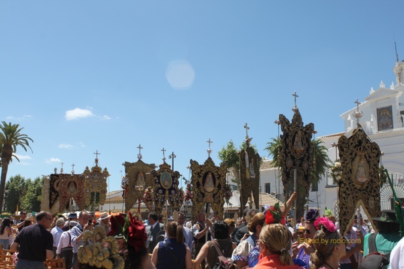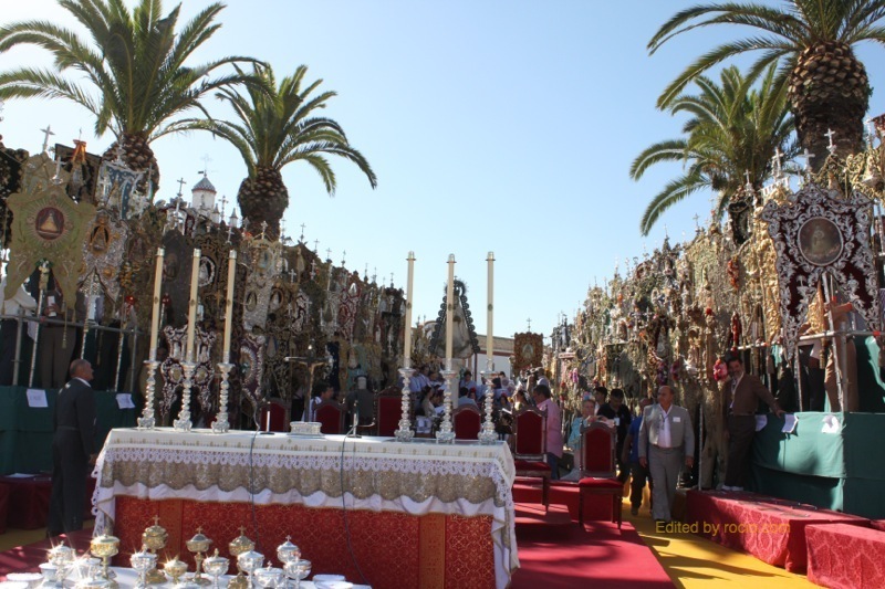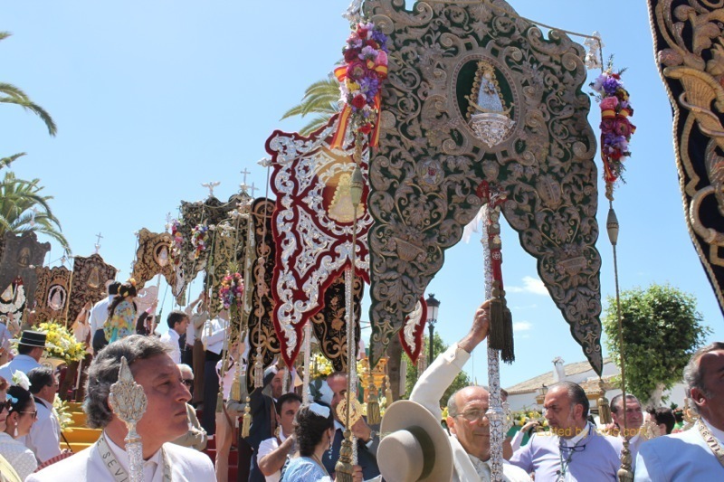 Simpecados en la Misa de Pentecostés en la aldea del Rocío. Este año por primera vez los Simpecados han estado colocados en tres alturas.