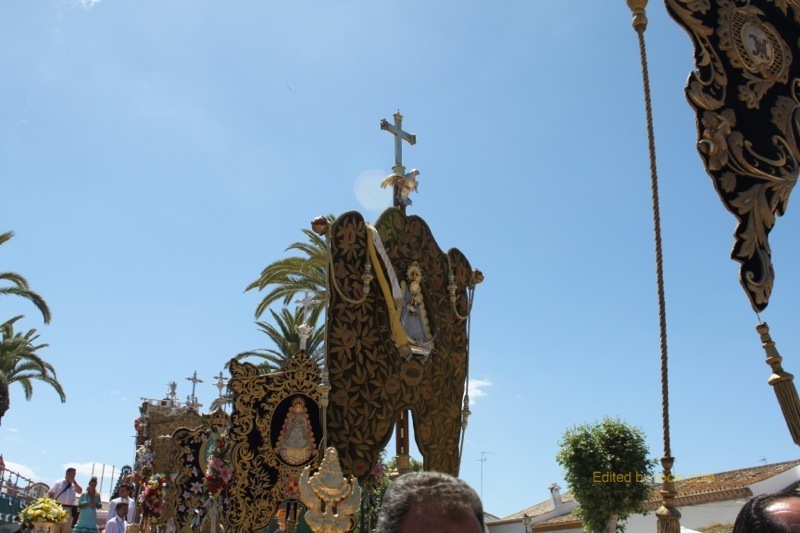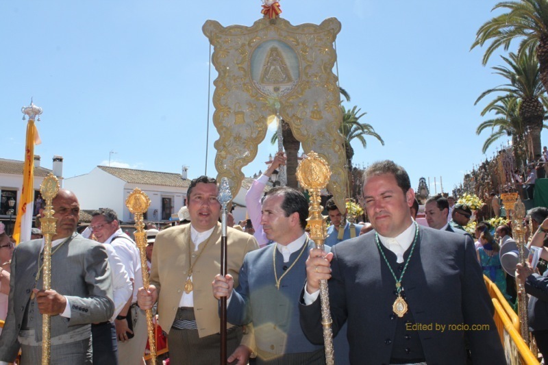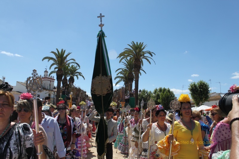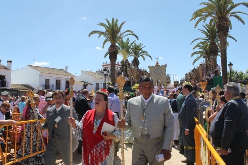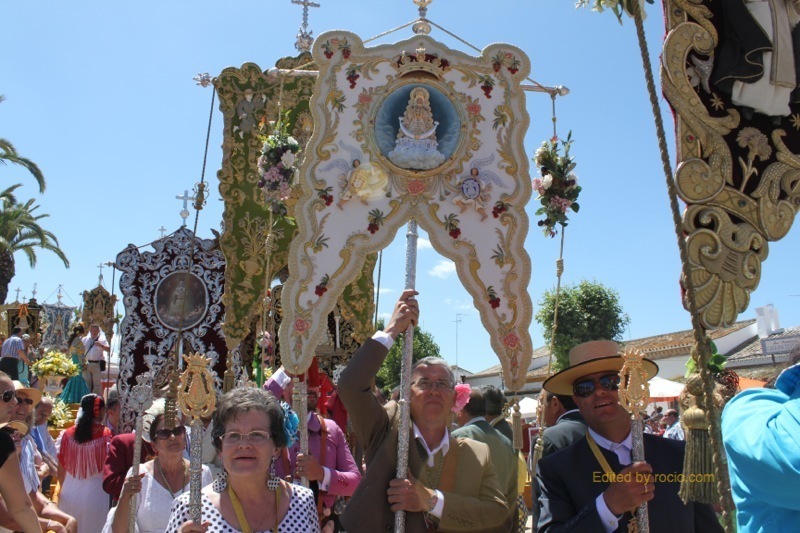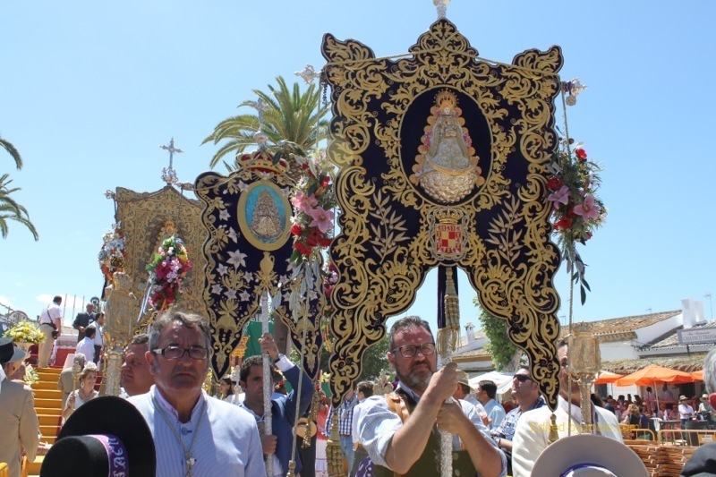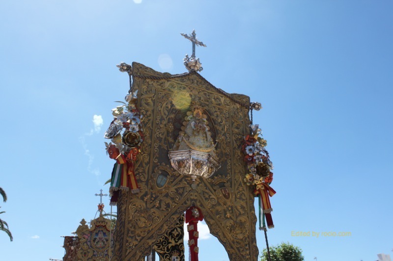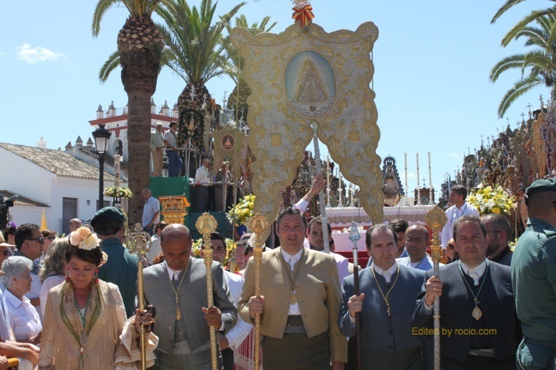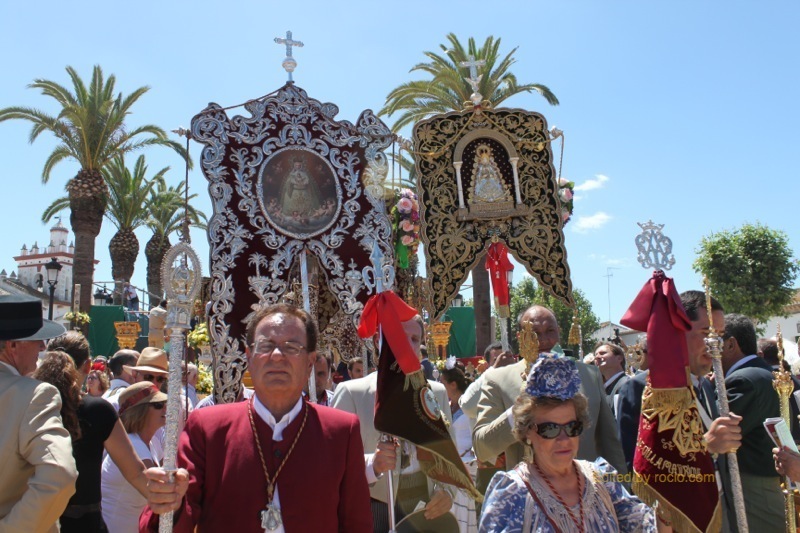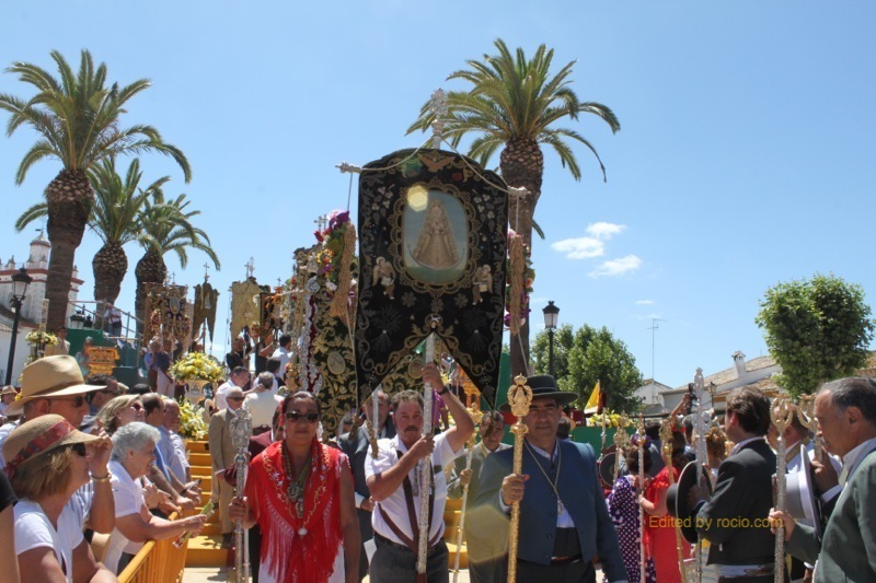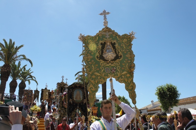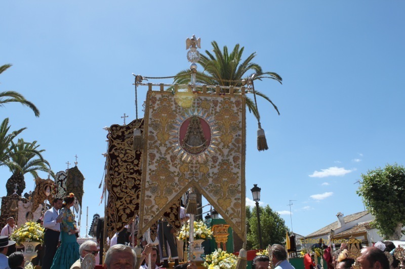 Simpecados en la Misa de Pentecostés en la aldea del Rocío. Este año por primera vez los Simpecados han estado colocados en tres alturas.