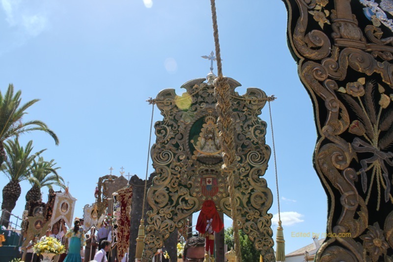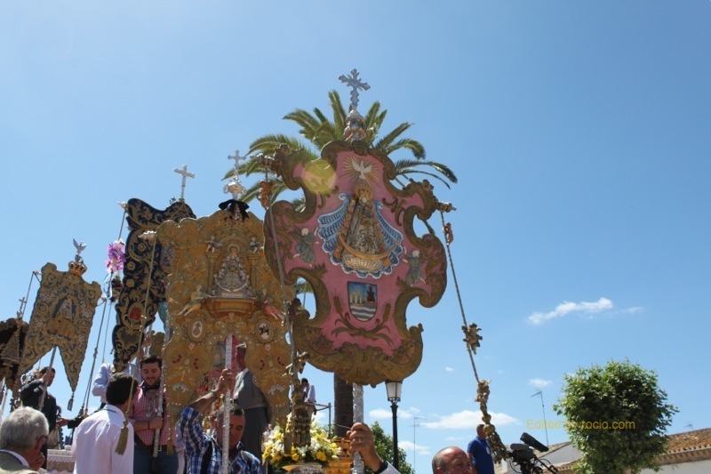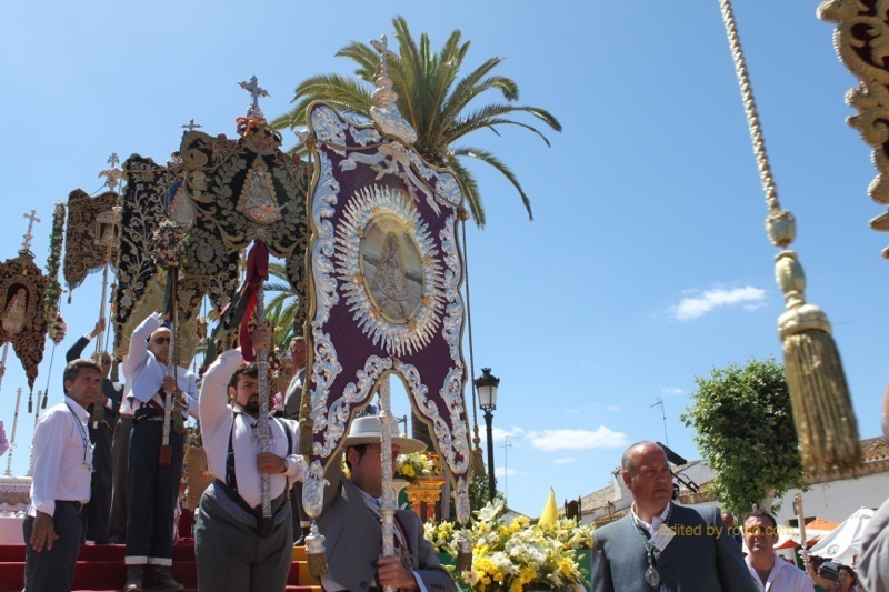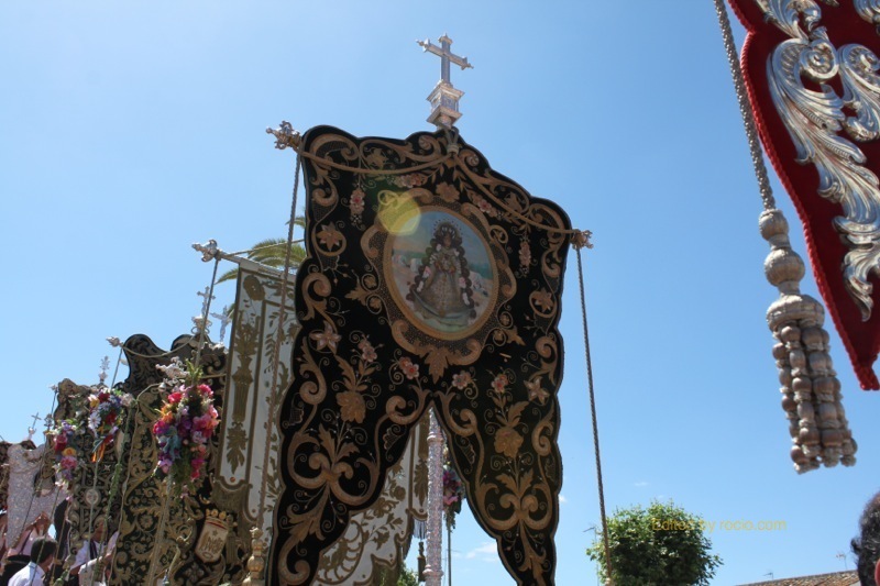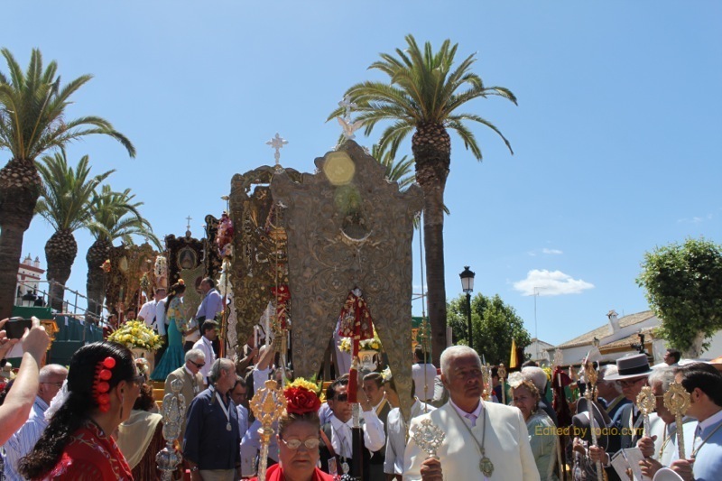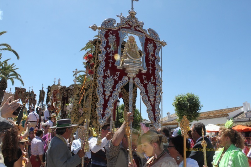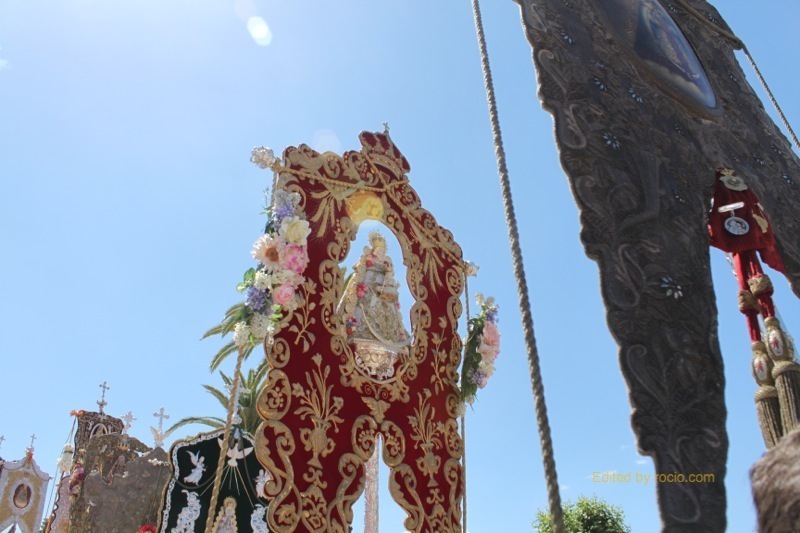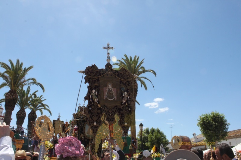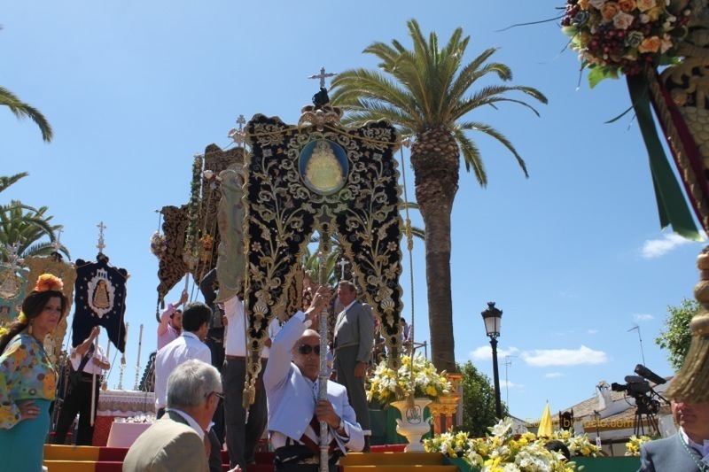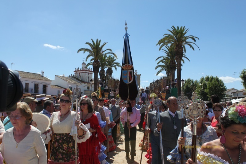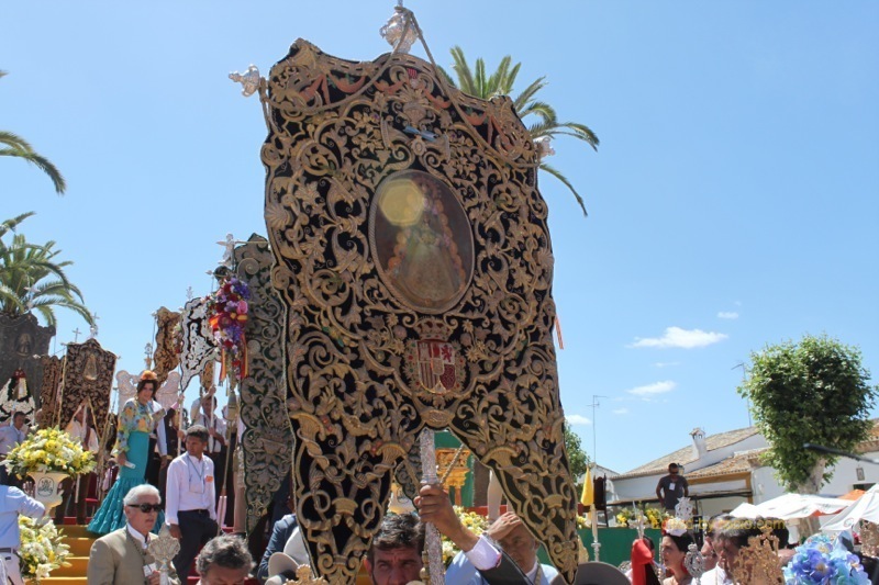 Simpecados en la Misa de Pentecostés en la aldea del Rocío. Este año por primera vez los Simpecados han estado colocados en tres alturas.