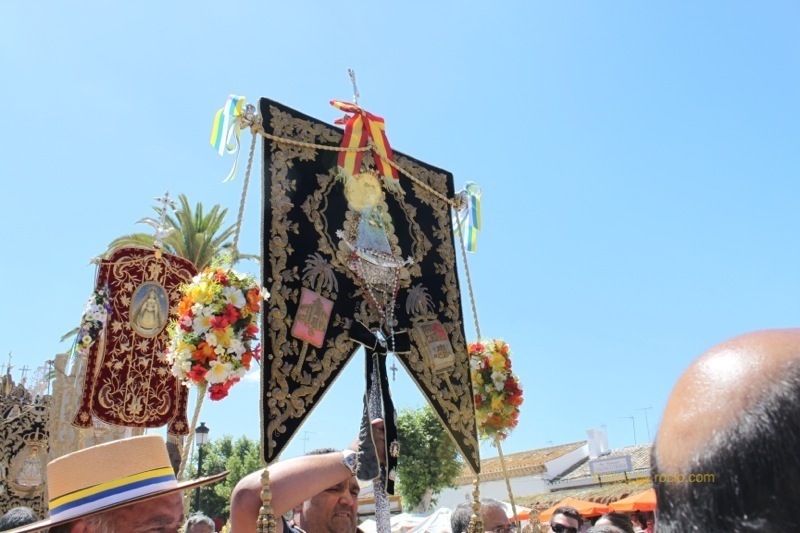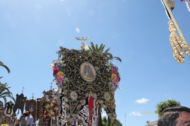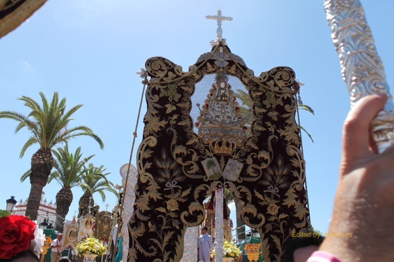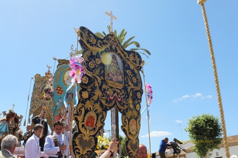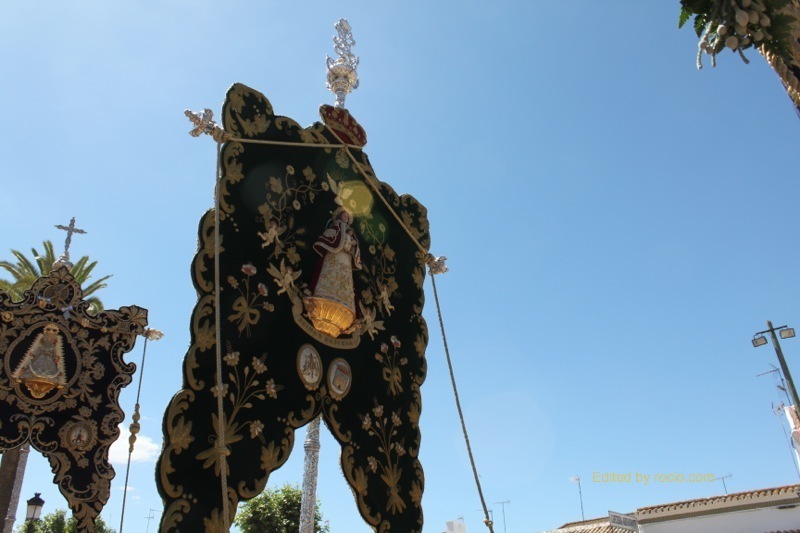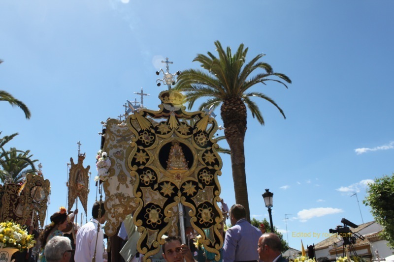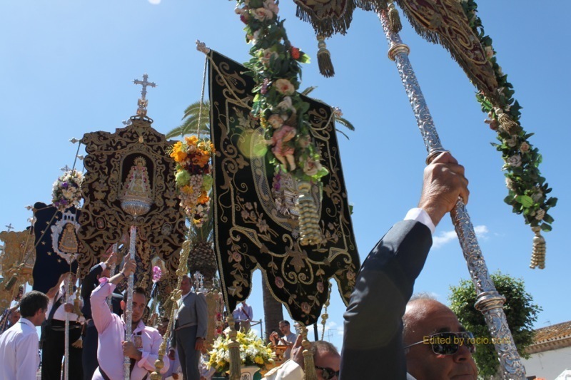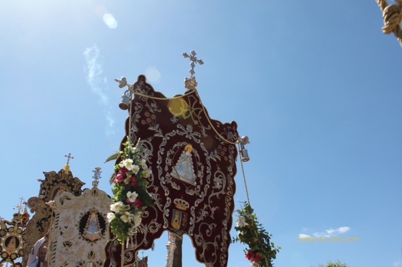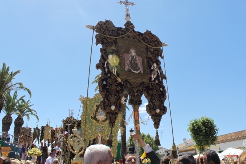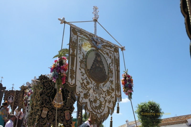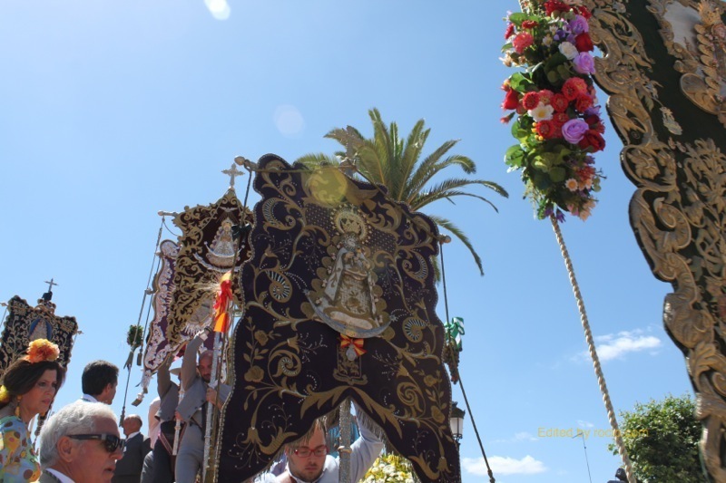 Simpecados en la Misa de Pentecostés en la aldea del Rocío. Este año por primera vez los Simpecados han estado colocados en tres alturas.