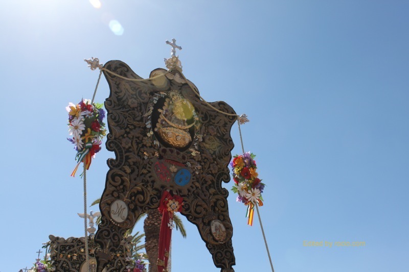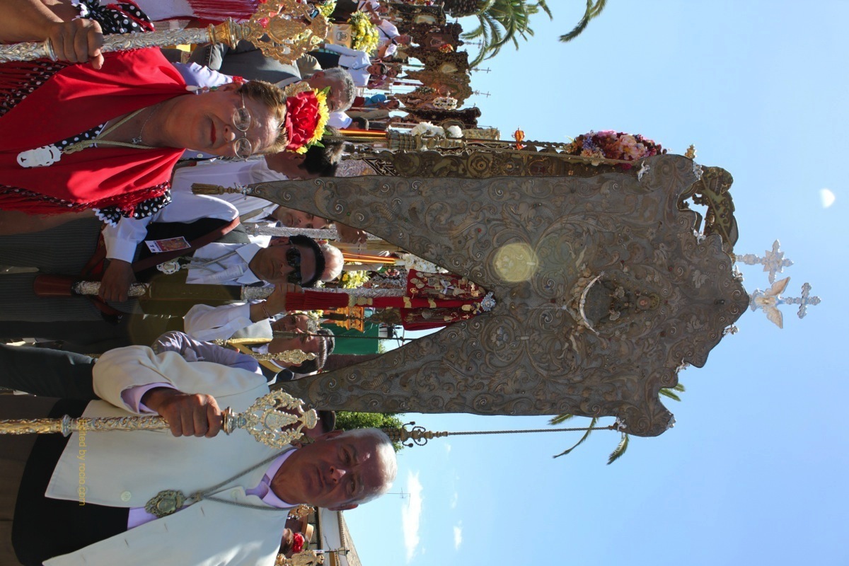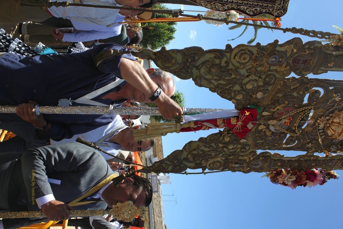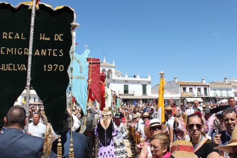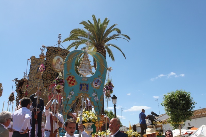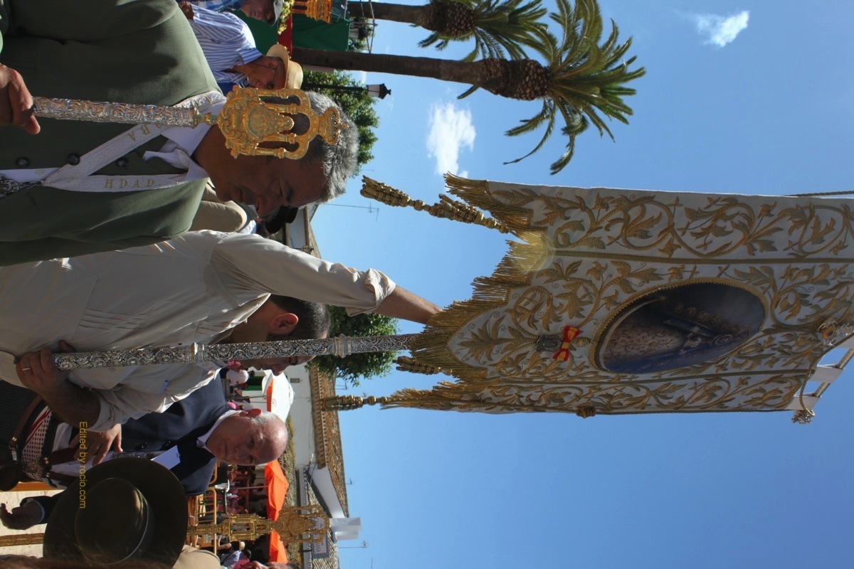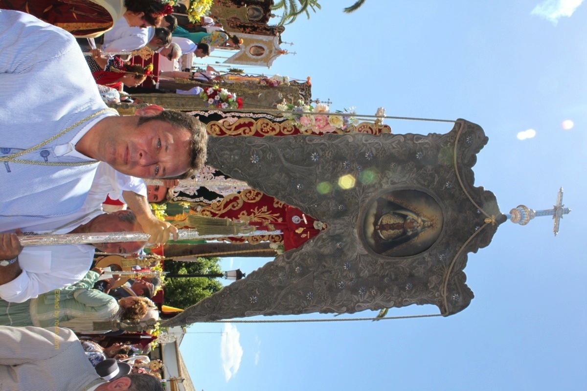 Simpecados en la Misa de Pentecostés en la aldea del Rocío. Este año por primera vez los Simpecados han estado colocados en tres alturas.