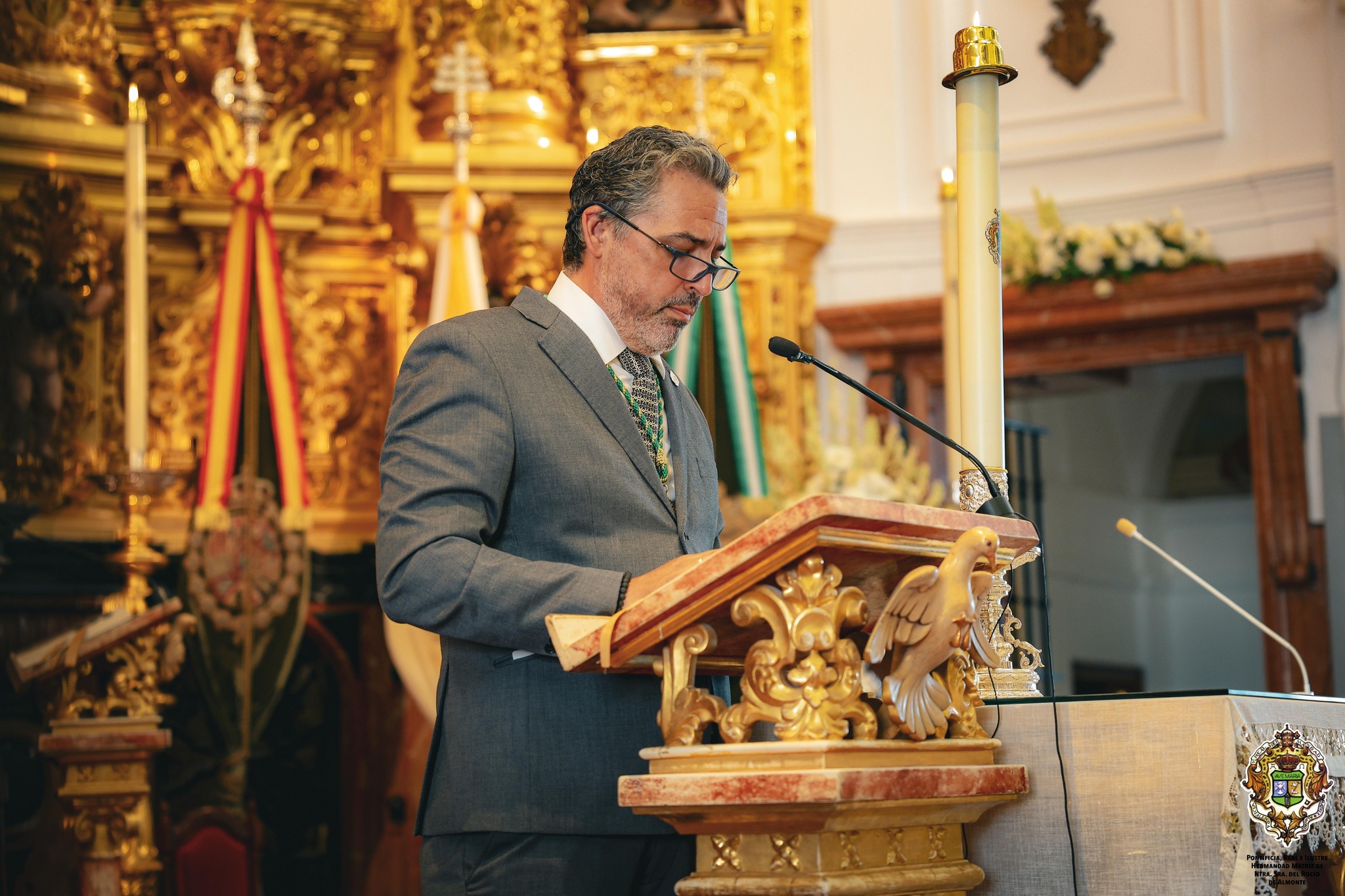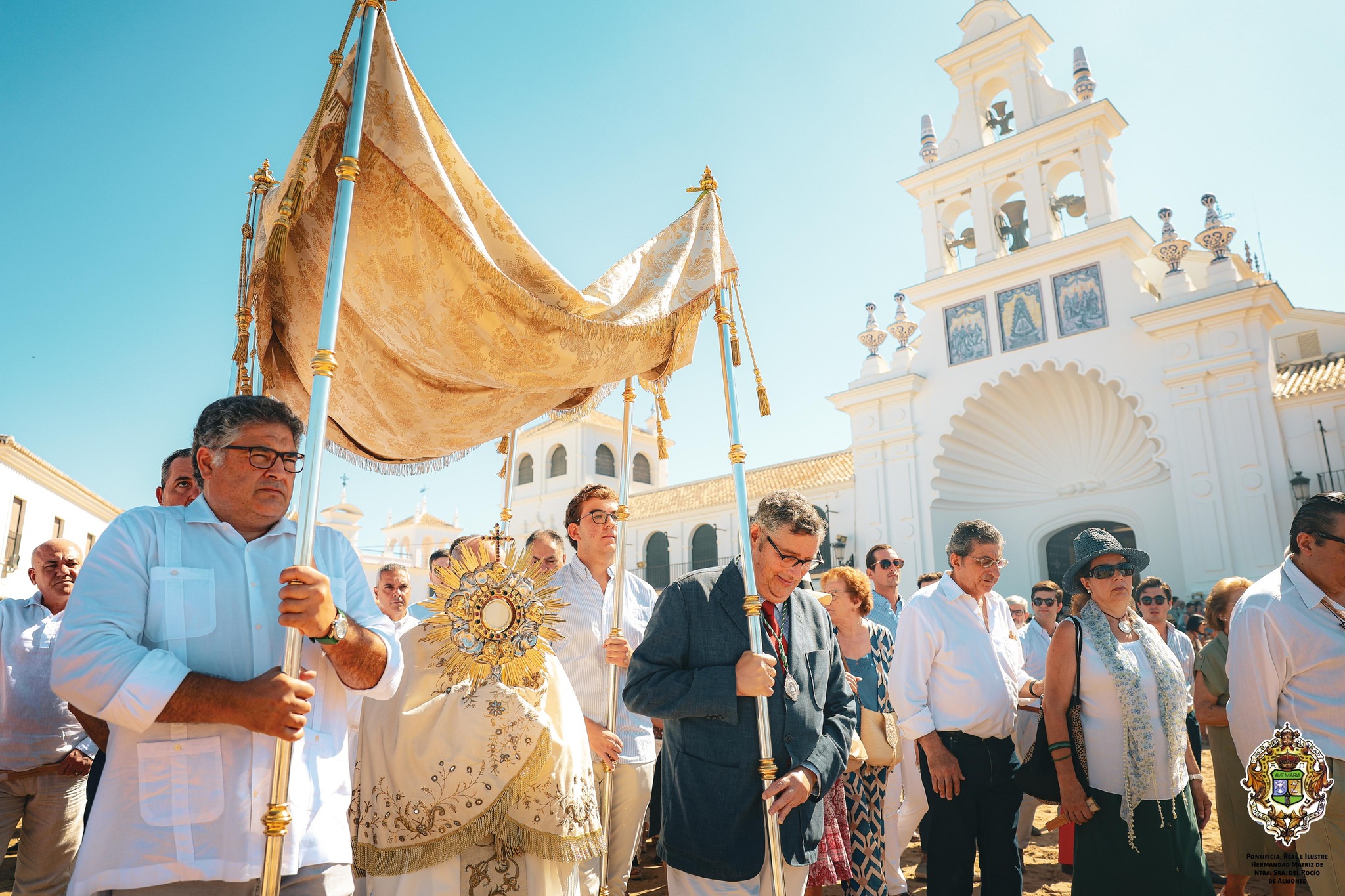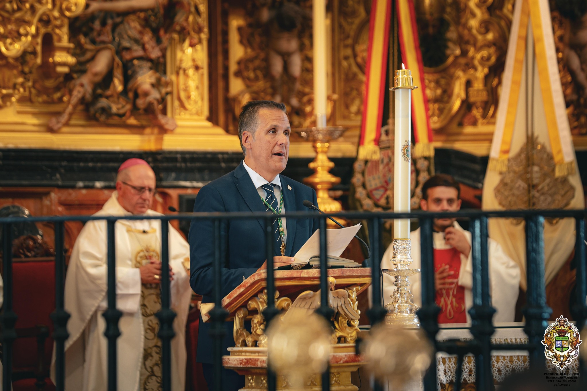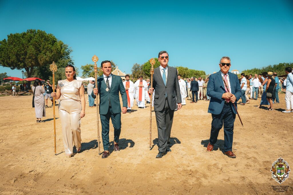 En esta crítica y lamentable situación, y deseando los que abajo firman manifestar algún tanto el reconocimiento y gratitud que deben al Todopoderoso Dios Nuestro Señor; por la intercesión de la Reina de los Ángeles, Maria Santísima Nuestra Madre y Señora del Rocío, de unánime consentimiento y conformidad, >han acordado hacer; como hacen, voto formal y expreso, por sí y en nombre de los que le sucederán en adelante, para siempre jamás, de pasar en la madrugada de día diez y nueve de Agosto de este año y de todos los venideros, a la ermita de Nuestra Madre y Señora, a cantar una solemne Misa en acción de gracias por el singular favor de haber conservado este pueblo, de las furias y rigor de los satélites del tirano, par lo cual se anunciará al público el diez y ocho con repique de campanas y el diez y nueve pasará una diputación compuesta de tres señores eclesiásticos, tres individuos del Ayuntamiento Constitucional y tres hermanos de la venerable Hermandad, en señal del justo reconocímiento en que vivímos por el expresado favor, y el de haber libertado las Andalucías y su Capital el 27 de Agosto del año pasado de 1.812 con las demás victorias conseguidas; y mandaron se extienda en acta formal para su cumplimiento, de que doy fe