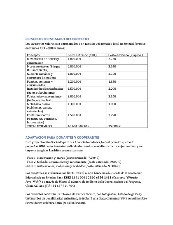 PROYECTO DE ALOJAMIENTO PARA MUJERES EN TRATAMIENTO ONCOLÓGICO Dakar, Senegal