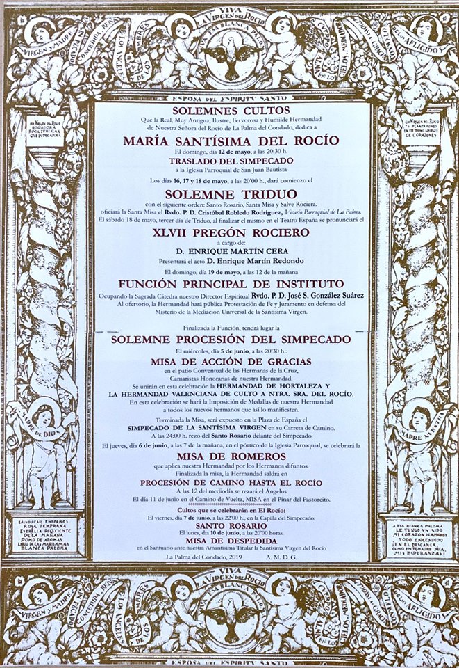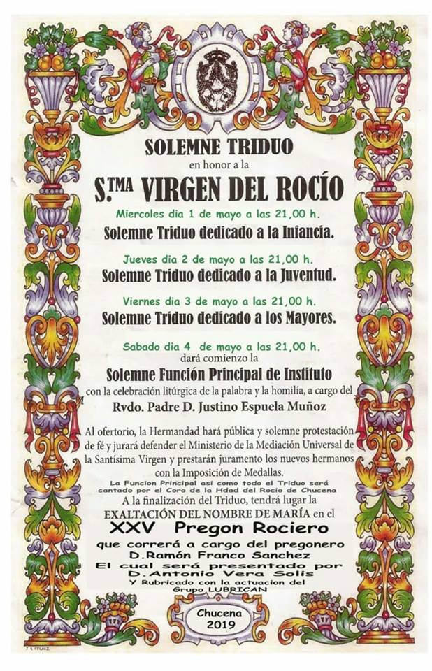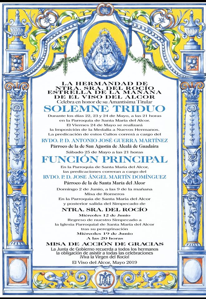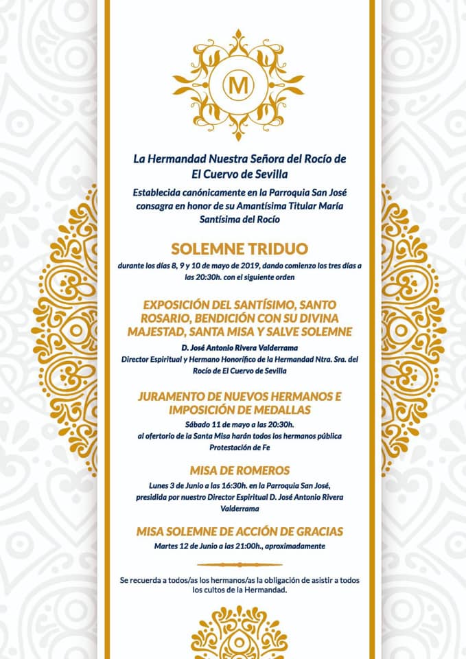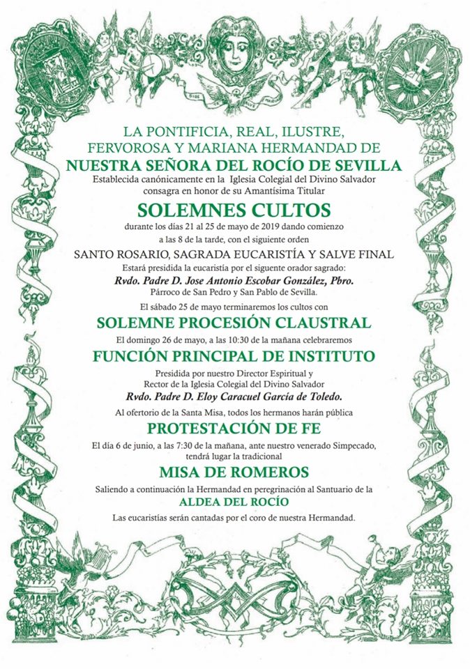 Solemnes Cultos en Honor de Ntra. Sra. la Virgen del Rocío 2019
