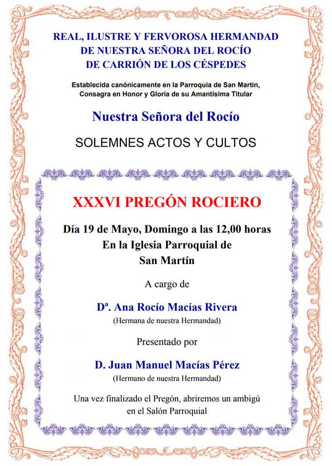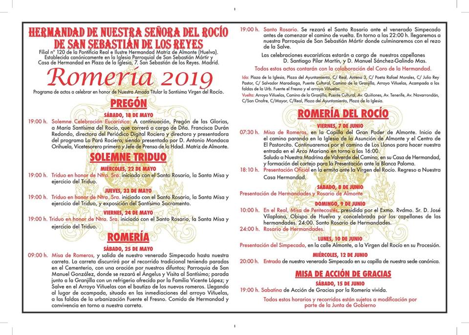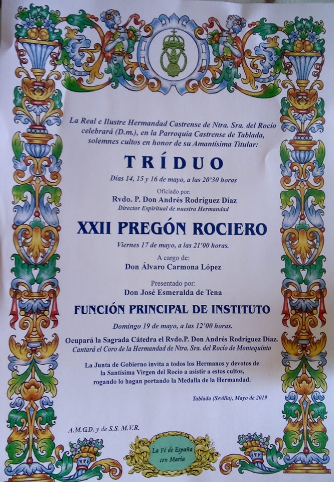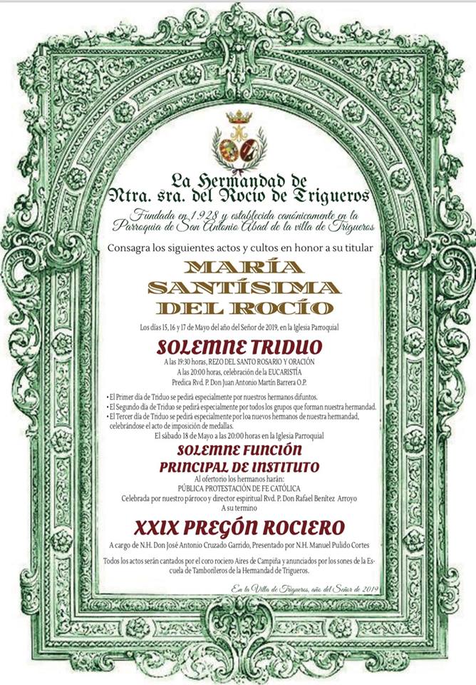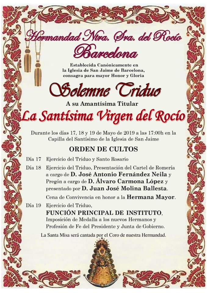 Solemnes Cultos en Honor de Ntra. Sra. la Virgen del Rocío 2019