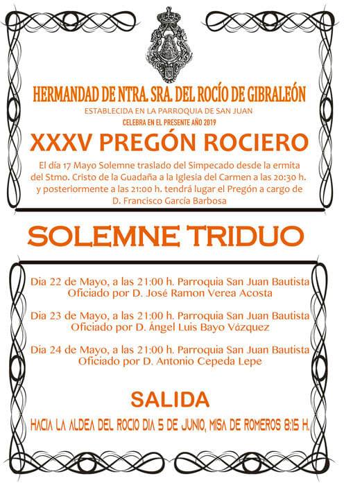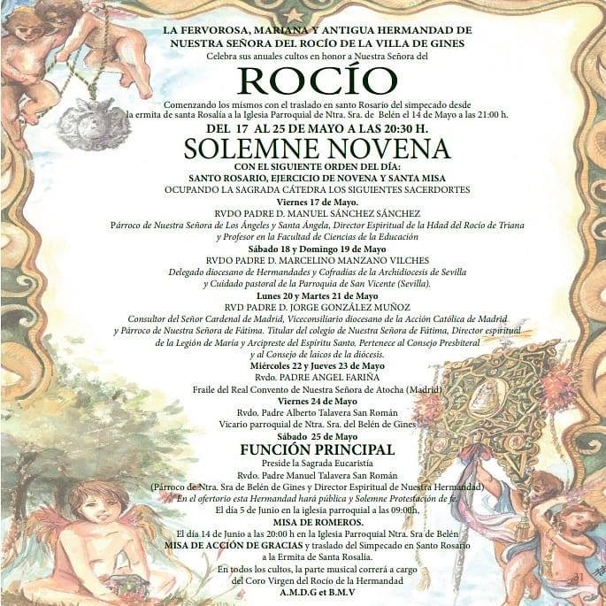 Solemnes Cultos en Honor de Ntra. Sra. la Virgen del Rocío 2019.