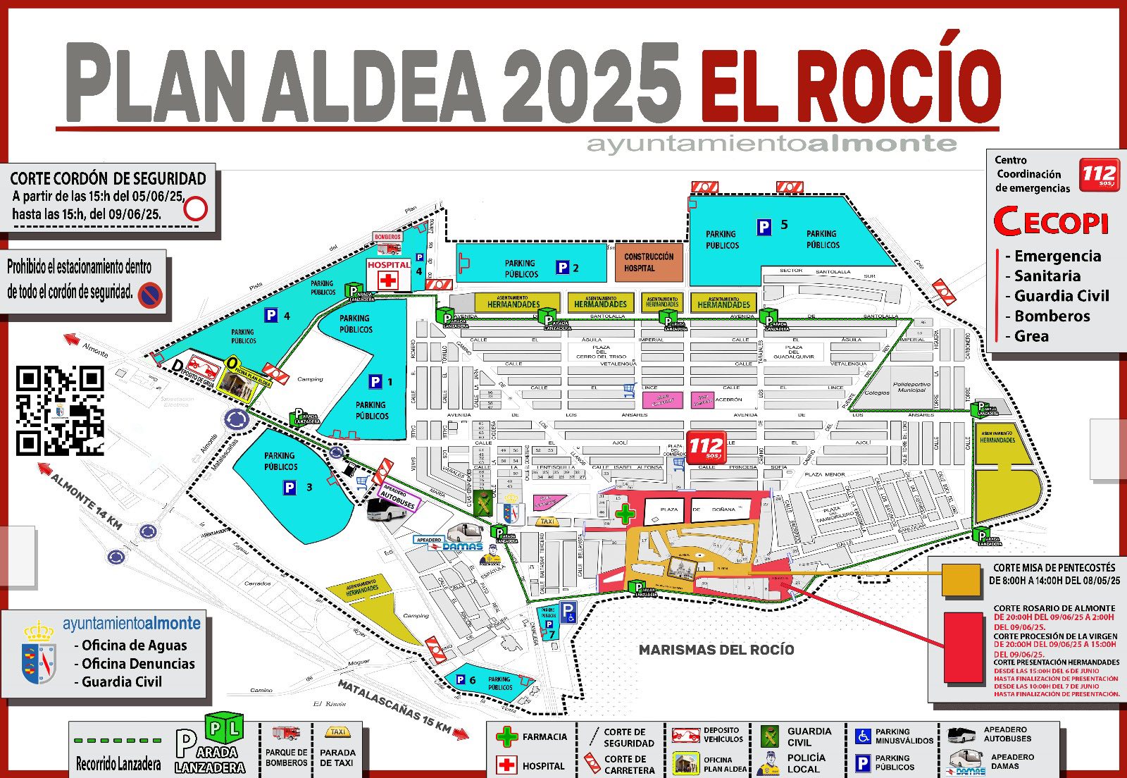 La aldea de El Rocío volverá a cerrarse para el acceso, circulación y estacionamiento de vehículos desde las once de la noche del jueves 5 hasta las tres de la tarde del lunes 9 de junio, una vez haya concluido la procesión de la Virgen.