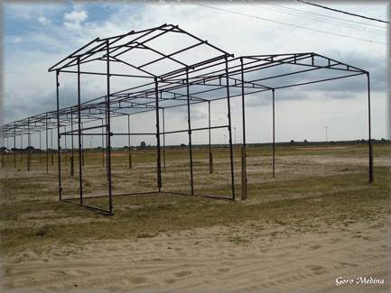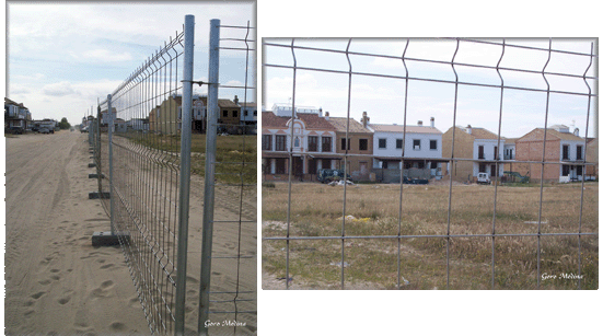 Una gran telaraña de metal, de forma inexorable, ha empezado a rodear El Rocío. Vallas metálicas y un sin fin de puestos de control, se van preparando. Dentro de pocos días, a vista de pájaro, la Aldea, entre el vallado y el puente militar, parecerá el campo del Coronel Bogey