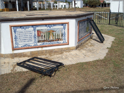 Sin embargo, hay detalles, como la puerta de la reja del Altar del Pañito, que siguen sin arreglarse. ¿Será muy caro? Quedan 116 días. ¡¡No vayamos despues a salir con la coletilla de que "tampoco hay tiempo" y esto está dentro de El Rocio, es decir, que aqui no hay problemas de competencias administrativas…..!!