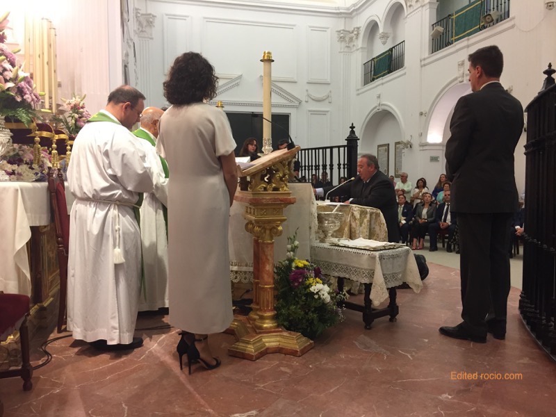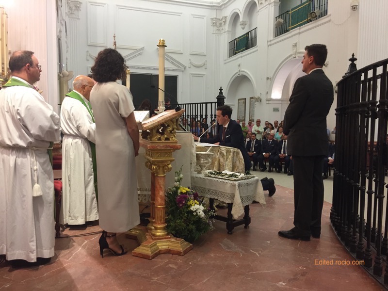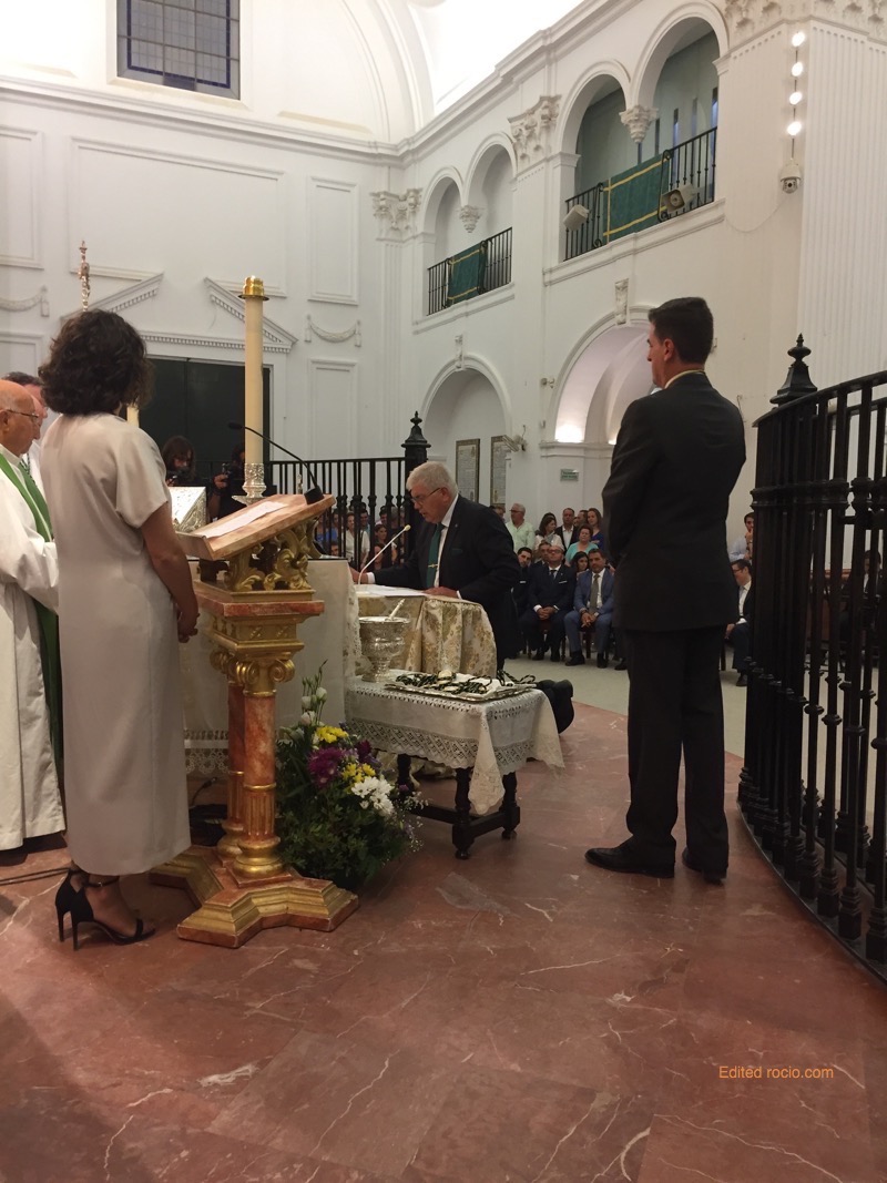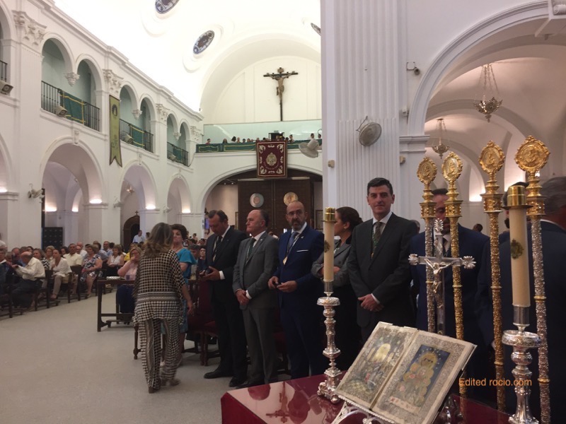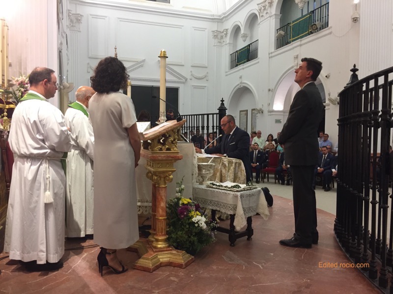 En la tarde del 29 de junio, festividad de San Pedro, patrón de Almonte, ha tomado posesión ante la Virgen del Rocío, la nueva junta de gobierno de la Hermandad Matriz de Almonte. Presidida por Santiago Padilla Díaz de la Serna, la actual directiva fue elegida por los hermanos el pasado 14 de junio, en un cabildo que se celebró en la parroquia de Nuestra Señora de la Asunción, de Almonte y que registro la más alta participación de la historia de la hermandad, con más de tres mil quinientos votos emitidos.