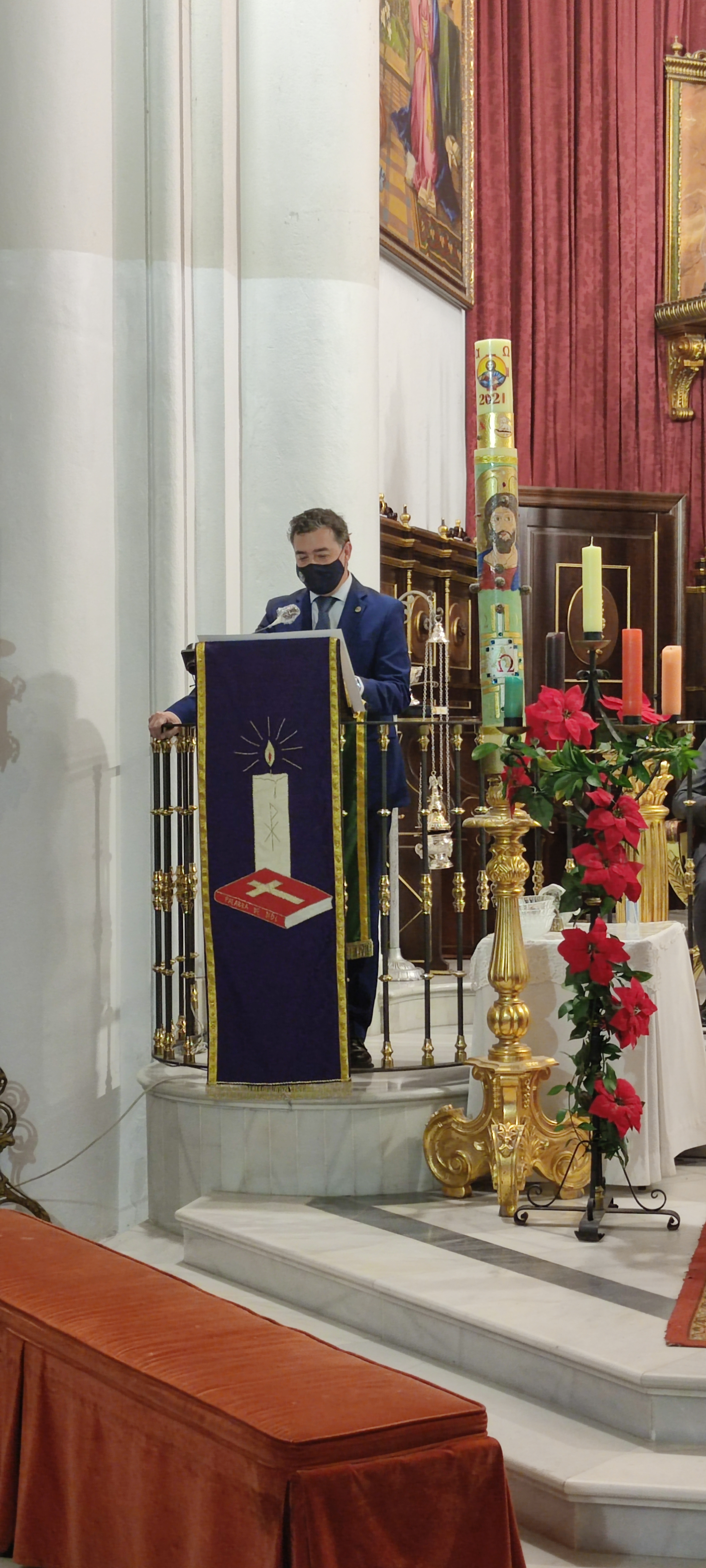 Torrado también hizo alusión los tiempos que vivimos que tildó de raros. “Hoy día que vivimos en tiempos… digamos raros, se nos dicta desde algunas autoridades políticas que no felicitemos la Navidad a nuestros amigos y familiares, que por el contrario felicitemos las fiestas; y todo ello en nombre de la inclusión. Pues yo les digo a esas personas que se afanan en ser los únicos defensores de la igualdad, que están equivocados y que desde hace más de 2.000 años que nació Jesús en un humilde portal, ya nació la justicia, el amor, la caridad y que nadie fue más bueno y más justo que Él buscando la igualdad, pero también les digo, que hoy día, pasados muchos años más, la Iglesia sigue presente, buscando por el amor, la caridad, la igualdad de todos sus hermanos, sin diferencias físicas y sin preguntar su afinidad. Que Cáritas Parroquial está presente y las bolsas de caridad, que yo no he visto más amor, amistad y vocación de servir a los demás, que en un camino de Rocío o en sus casas de hermandad al llegar los peregrinos, y por eso hoy les digo a todos y los felicito de verdad, que tengan una feliz Pascua. Feliz Navidad”.