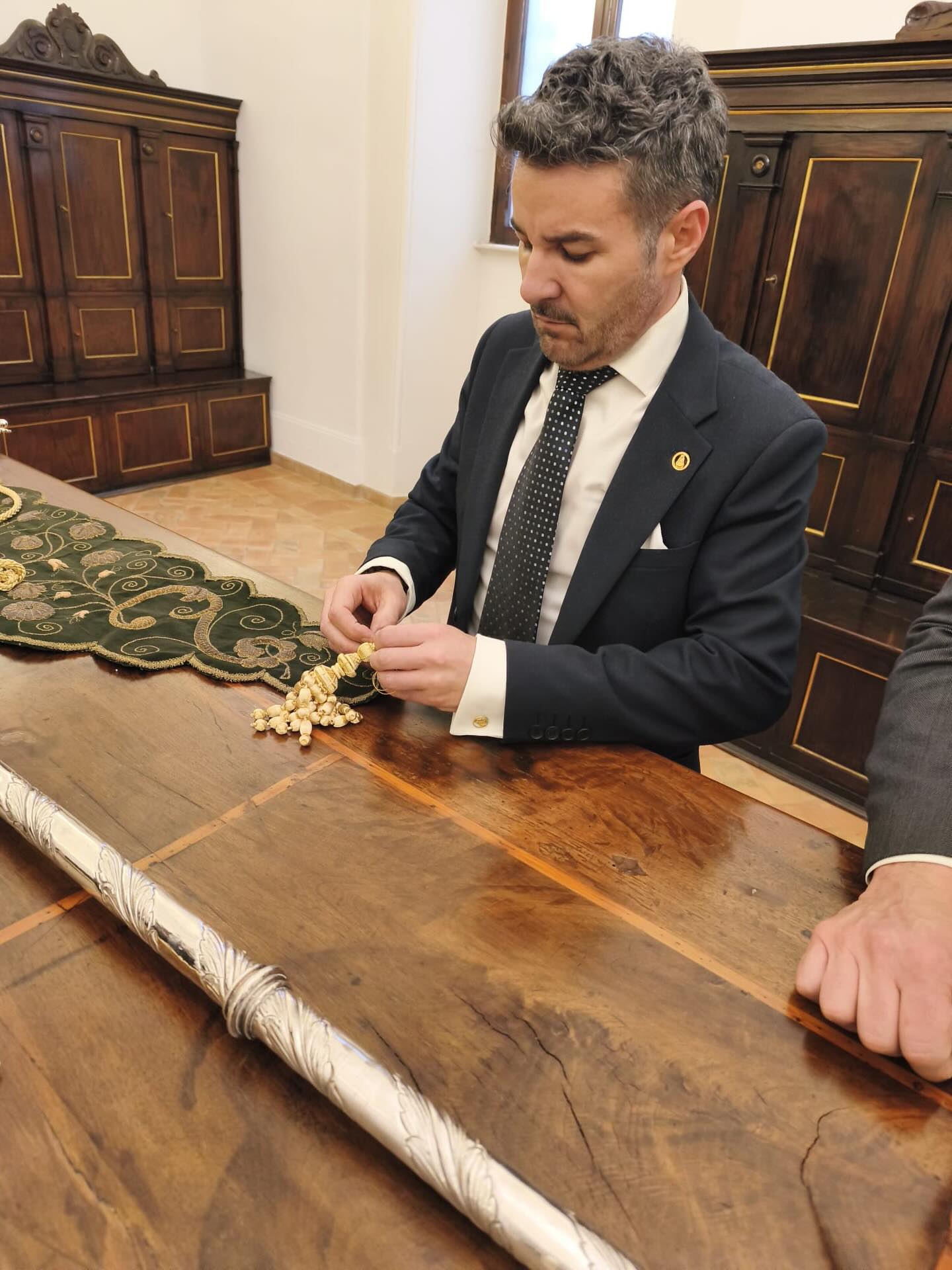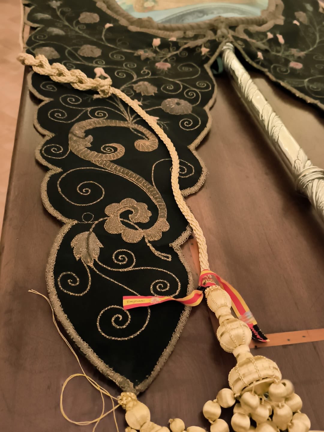 Trabajos de restauración del Simpecado verde de la Hdad. Matriz en Roma