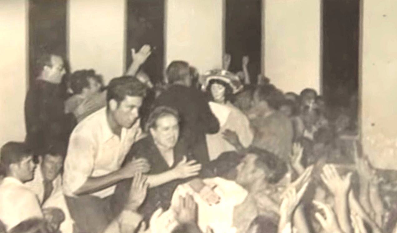 Podemos contemplar en la instantánea a la camarista Ana Acevedo calmando a la muchedumbre, y de fondo, el párroco de Almonte, don Antonio María Pulido Beltrán, si no me equivoco.