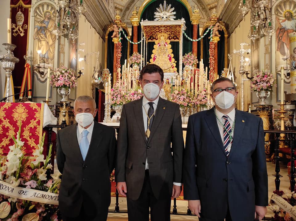 Es un honor compartir este momento, con la alegría propia de un Domingo de Pentecostés, tras haber participado de la Misa Pontifical ante la Virgen en Almonte, con mi amigos y hermanos Santiago Padilla y Pedro Rodriguez Villa. Sobre los tres ha recaído la responsabilidad y el honor de estar al frente de la Hermandad Matriz, y los tres hemos coincidido en una misma Junta de Gobierno y compartido proyectos e ilusiones. Hoy es Santiago quien nos preside, y por ello lo felicitamos por este Rocío, que aún marcado por las circunstancias que nos rodean, formará ya parte de la historia del Rocío. Desde el recuerdo tambien de los que nos precedieron y faltan en esa foto, le pedimos a la Virgen, Patrona de Almonte, que pronto superemos esta difícil etapa y que Ella ayude y proteja siempre a nuestra Hdad. Matriz y a toda la familia rociera.