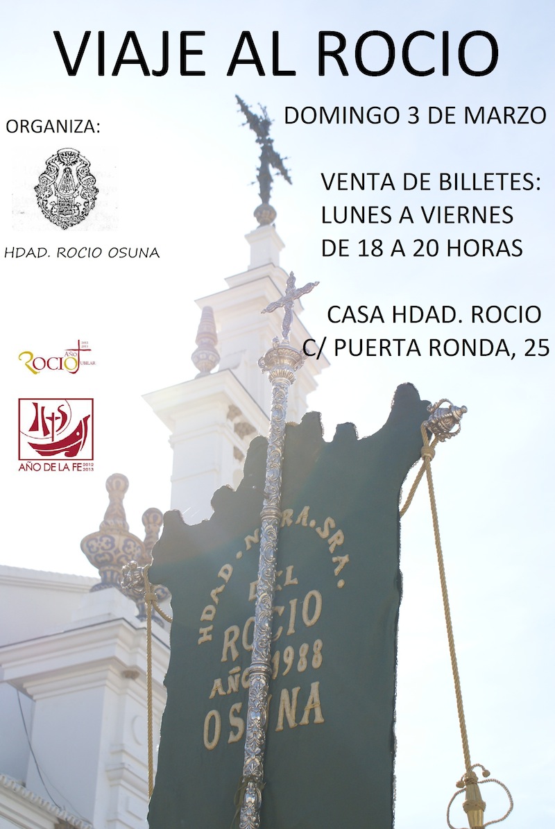 La Hermandad de Ntra. Sra. del Rocío de Osuna organiza un viaje al pueblo de Almonte, como realiza anualmente para celebrar la Santa Eucaristía a las plantas de la Blanca Paloma.