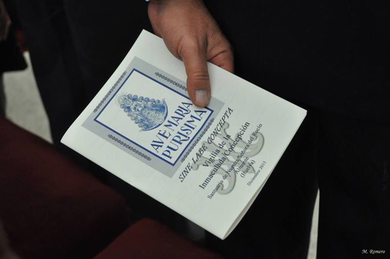 Vigilia de la Inmaculada Concepción celebrada el sábado 7 de diciembre. La Coral Villa de Paterna cantó en el Santuario del Rocío, la Función de la Víspera de la Inmaculada.