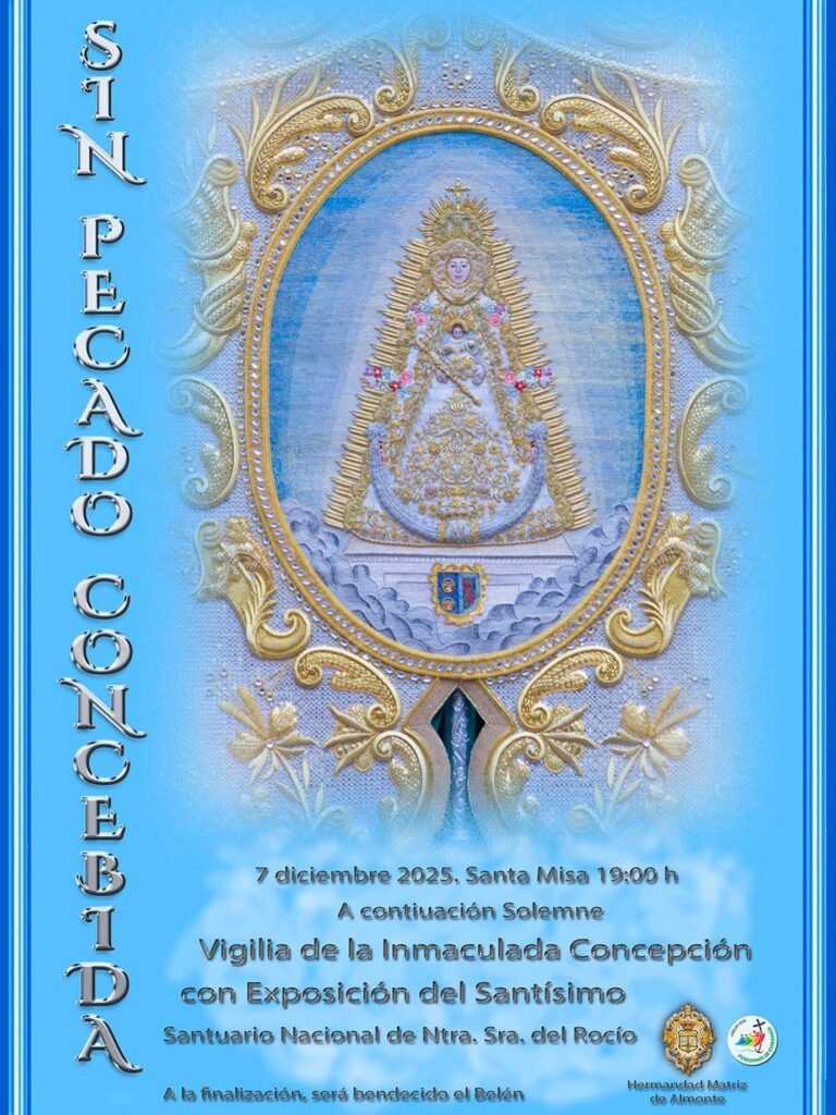 Como es tradicional, el 7 de diciembre, a las 19:00 horas, celebramos en el Santuario del Rocío la Vigilia de la Inmaculada Concepción de María, un momento fuerte de preparación para la Natividad del Señor.