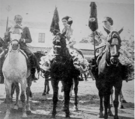 Una de las estampas propias del día, después de haber pasado por la Ermita la carreta tras el desfile, fue el grupo de rocieros delante de la Princesa Doña Sofía, y Doña Esperanza y Don Pedro de Orleans, tíos de S.M. el Rey Don Juan Carlos I, que iban a caballo: el entonces Párroco de Villamanrique, D. Juan Manuel Núñez Contreras, el que luego fuera misionero claretiano, Blas Márquez Bernal, el Presidente y el Secretario de la Hermandad, Diego José Muñoz Márquez y Manuel Carrasco Díaz, respectivamente, José Zurita Chacón y algunos empleados de la Casa Palacio, como Rosa Chacón Díaz y Pepi Muñoz Espinar.