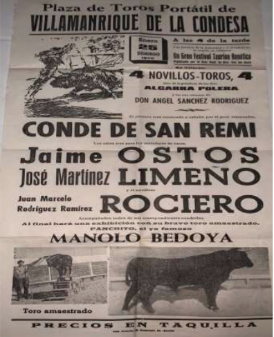 Para afrontar las mensualidades al taller de orfebrería, se organizaron corridas de toros. Y para ello se contó con la colaboración de las diferentes explotaciones ganaderas, próximas a Villamanrique y de algunos toreros, que actuarían gratuitamente.
