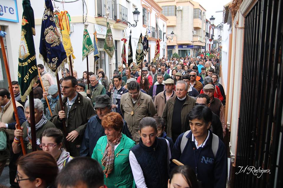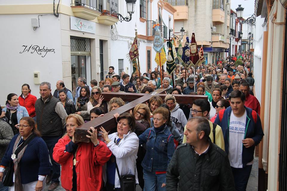 XVI Vía Crucis penitencial, con las Hddes. de la provincia de Cadiz y Ceuta junto con la Hdad. Matriz, caminando desde Almonte hasta el Rocío. Iniciado el Vía Crucis, tras la segunda estación, se acercan a las arenas del Camino de los Llanos. A las 14 h llegarán al Santuario, D.m. Este tradicional Vía Crucis se realiza todos los años desde Almonte hasta El Rocío, siendo uno de los actos más entrañables de los que vienen a sucederse a lo largo del año. Cada hermandad reza una estación.