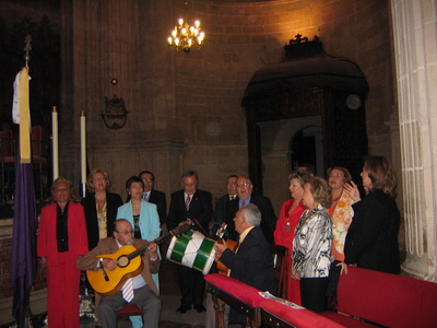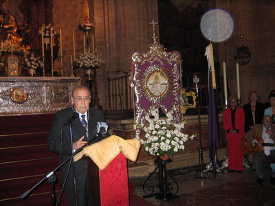 El Pregón estuvo acompañado del Coro "De la Sierra a las Marismas" y a la guitarra por Antonio Martín Junio. Presentó a la Pregonera, depués de una intervención de nuestro Hno. Mayor, el también exhermano Mayor de la Asociación de Ronda, Manuel Ramírez Sabater, que con palabras cariñosas, glosó la figura de nuestra pregonera.