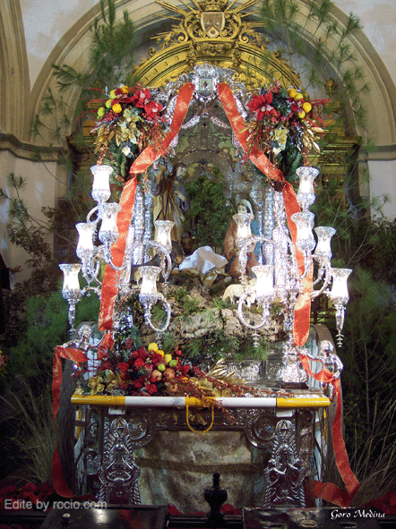 Ya está instalado el Belén en la Parroquia de la Asunción. Le sirve como incomparable marco, la Carreta de Plata de la Hermandad de Sanlucar de Barrameda